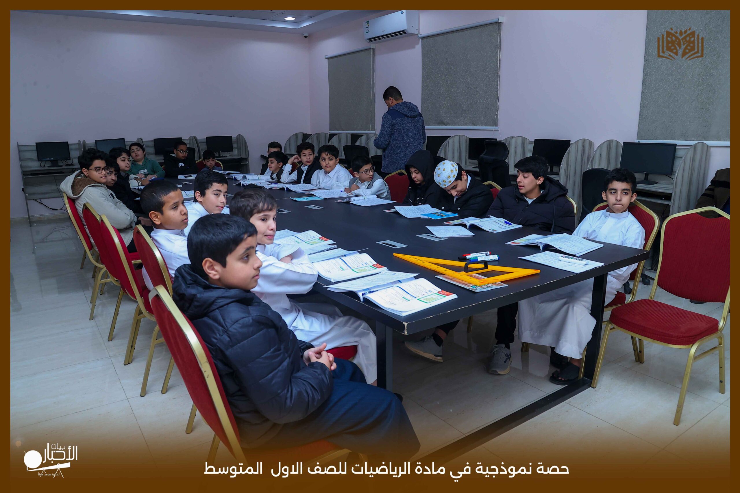 كما حرص المعلم على توظيف الوسائل التعليمية المناسبة، التي ساعدت في تبسيط المفاهيم الرياضية وتوصيل المعلومات بطريقة واضحة وسلسة.
