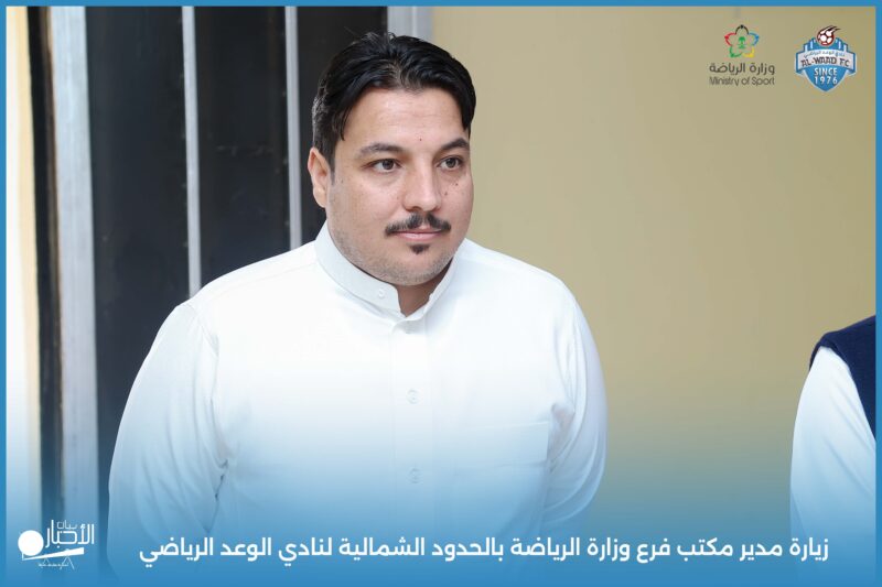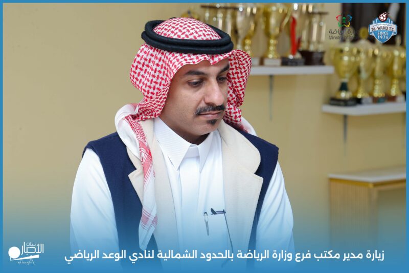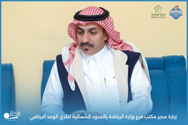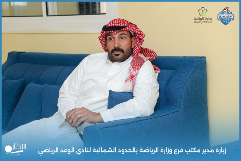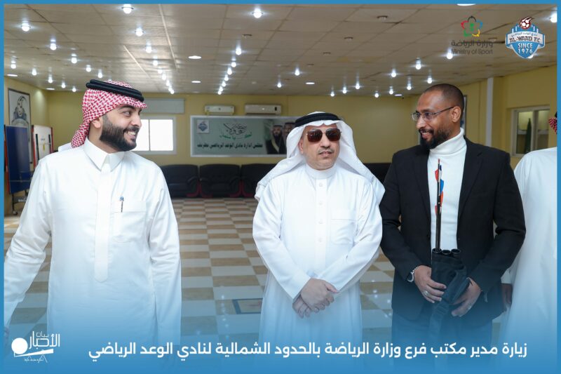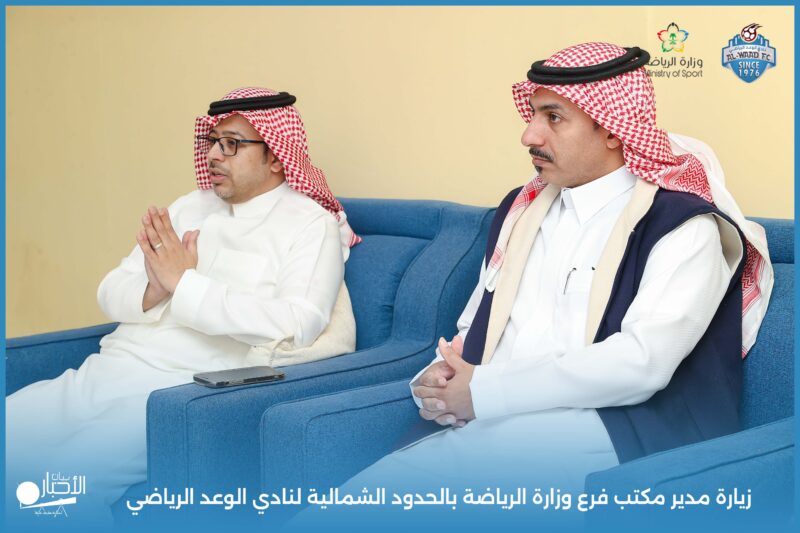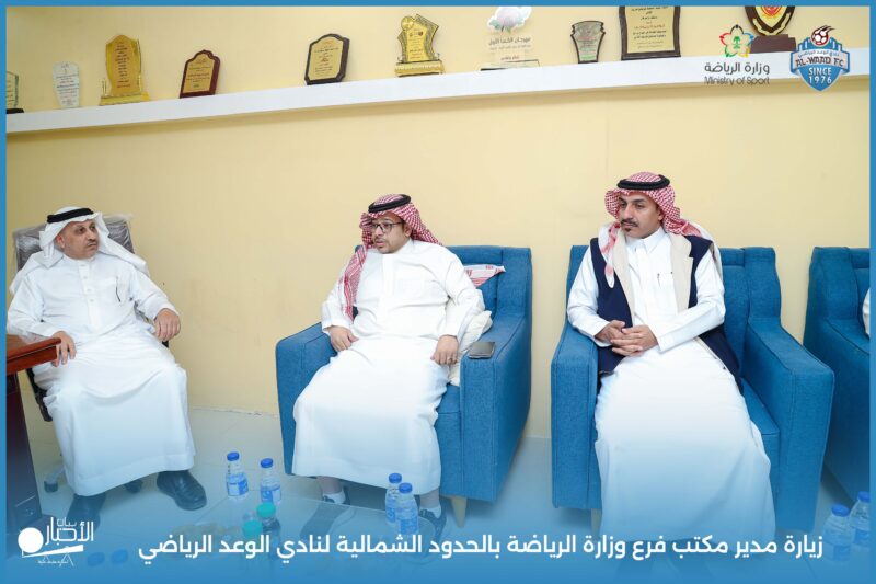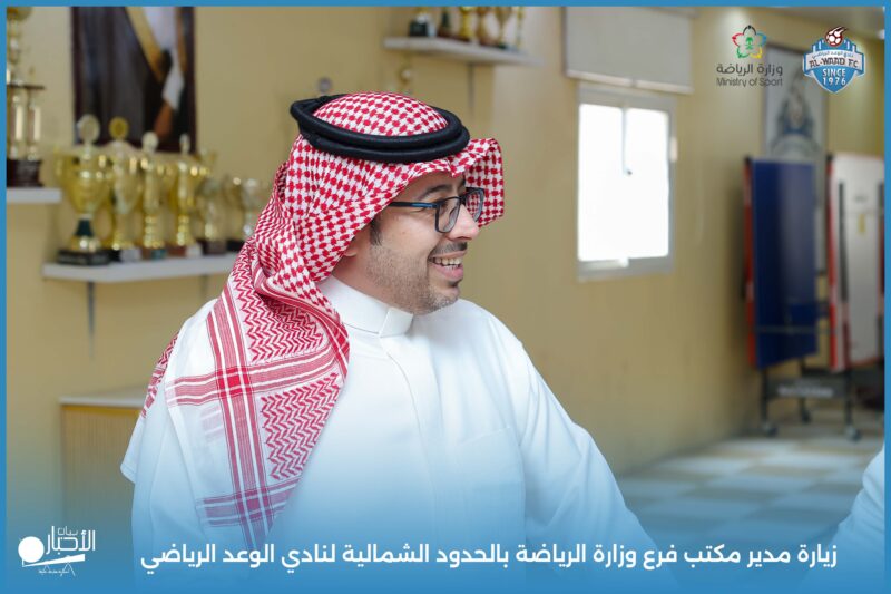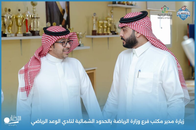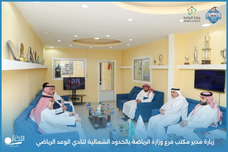 استقبل نادي الوعد الرياضي زيارة رسمية من قبل مدير فرع وزارة الرياضة بمنطقة الحدود الشمالية الأستاذ ملهم الخالدي، يرافقه نائب مدير الفرع الأستاذ خميس رضيمان، وذلك في إطار دعم الأندية الرياضية والاطلاع على سير العمل والأنشطة المختلفة.