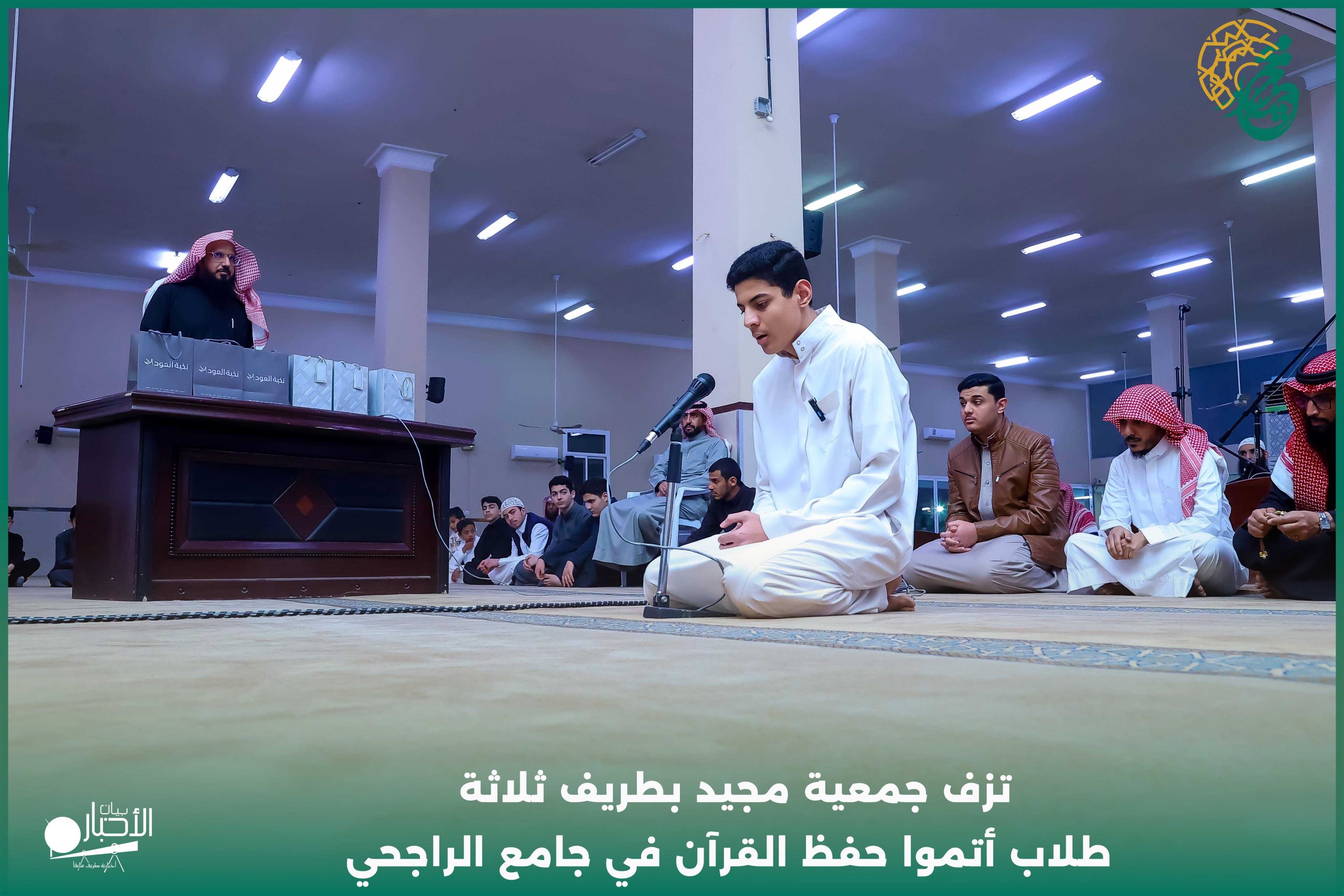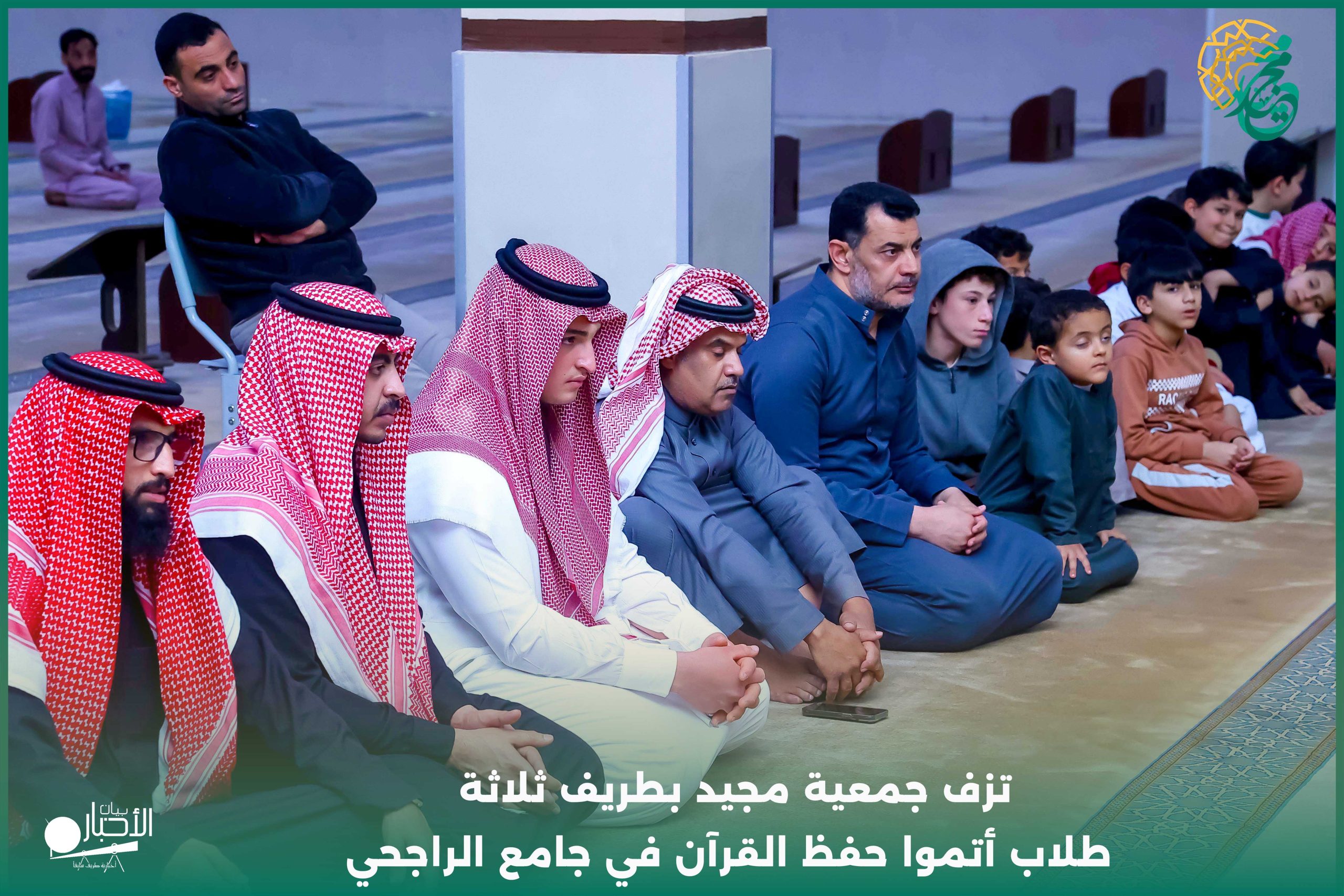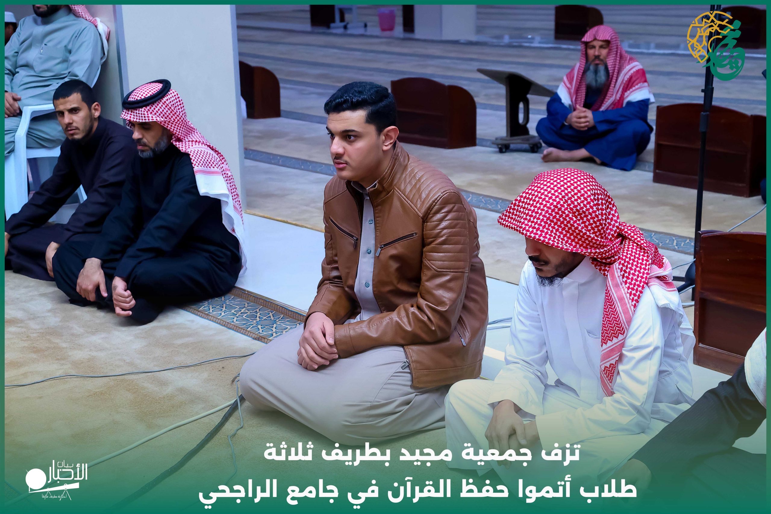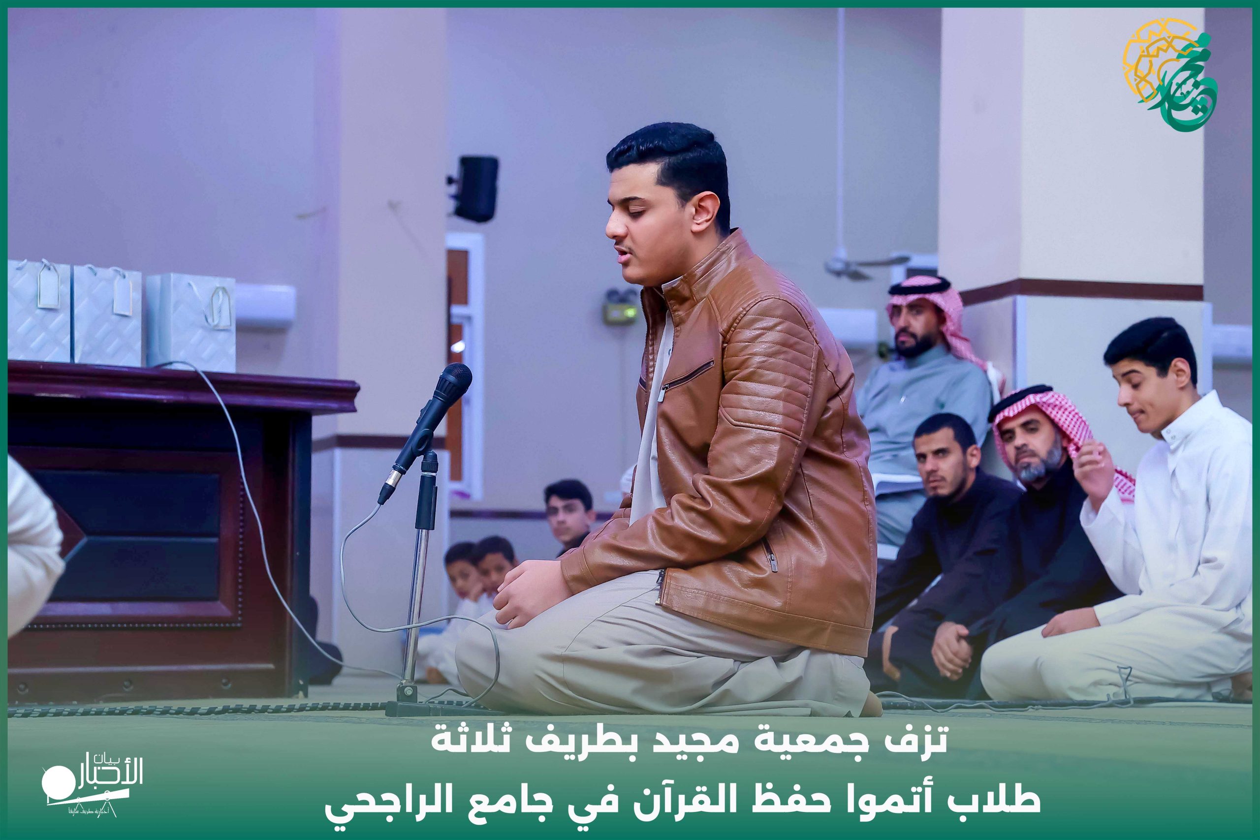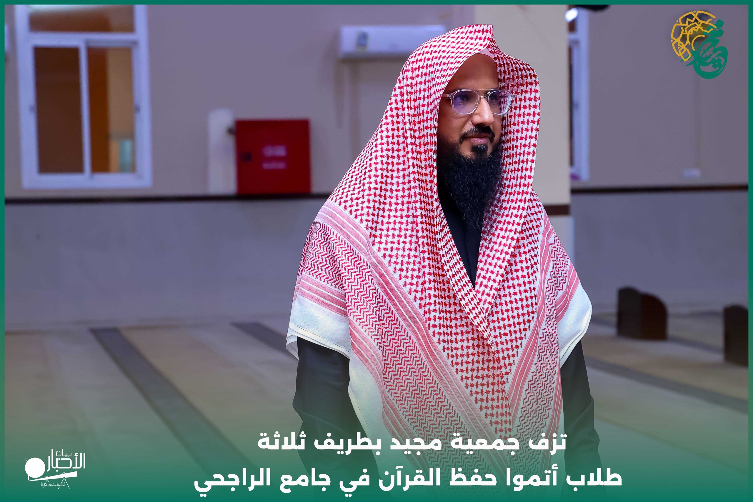 تزفّ جمعية مجيد لتحفيظ القرآن الكريم بمحافظة طريف أجمل البشائر، حيث شهدت المدرسة القرآنية بجامع الراجحي احتفاءً مميزًا بإتمام ثلاثة من طلابها حفظ كتاب الله تعالى، وذلك في أجواء إيمانية مفعمة بالفرح والسرور.