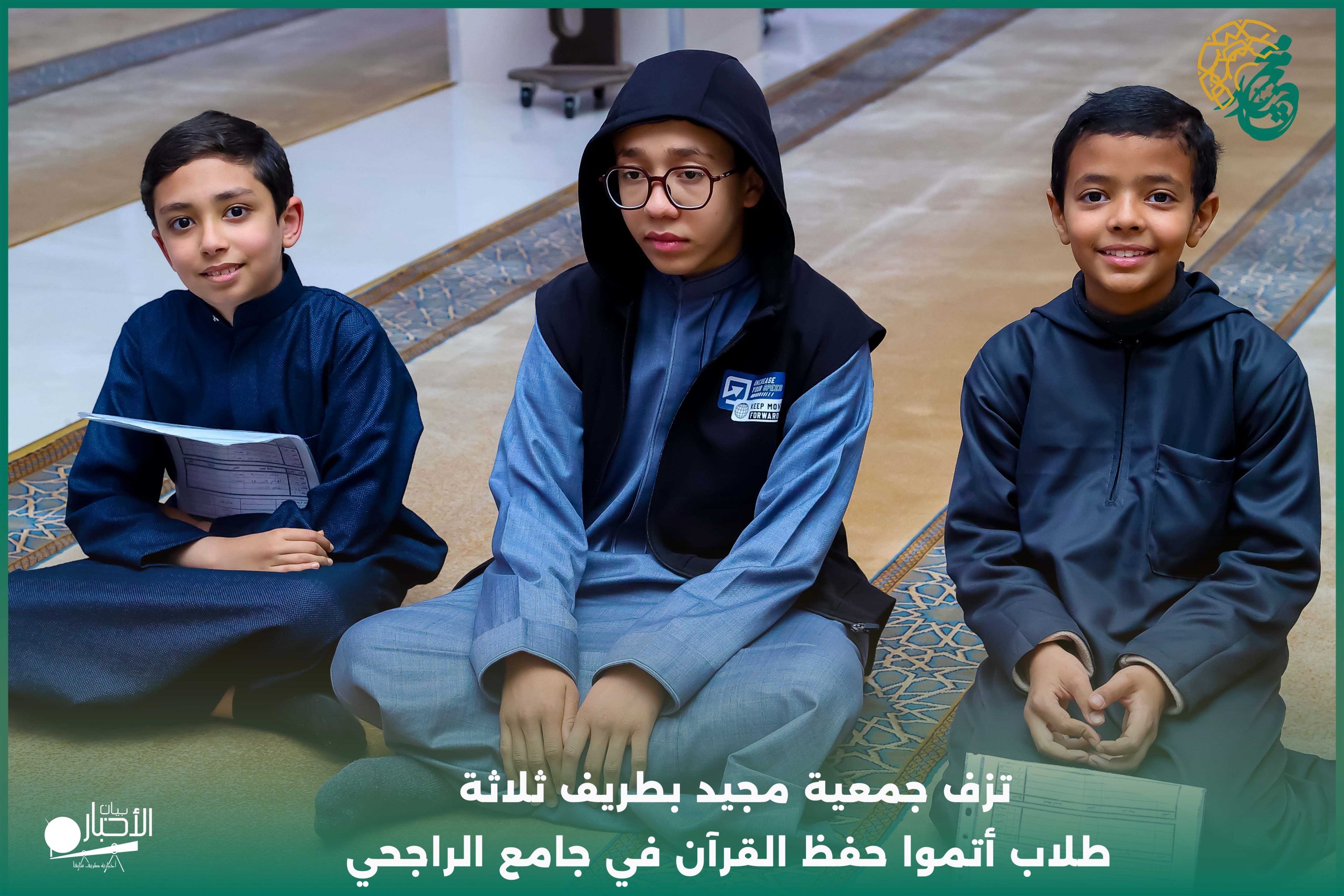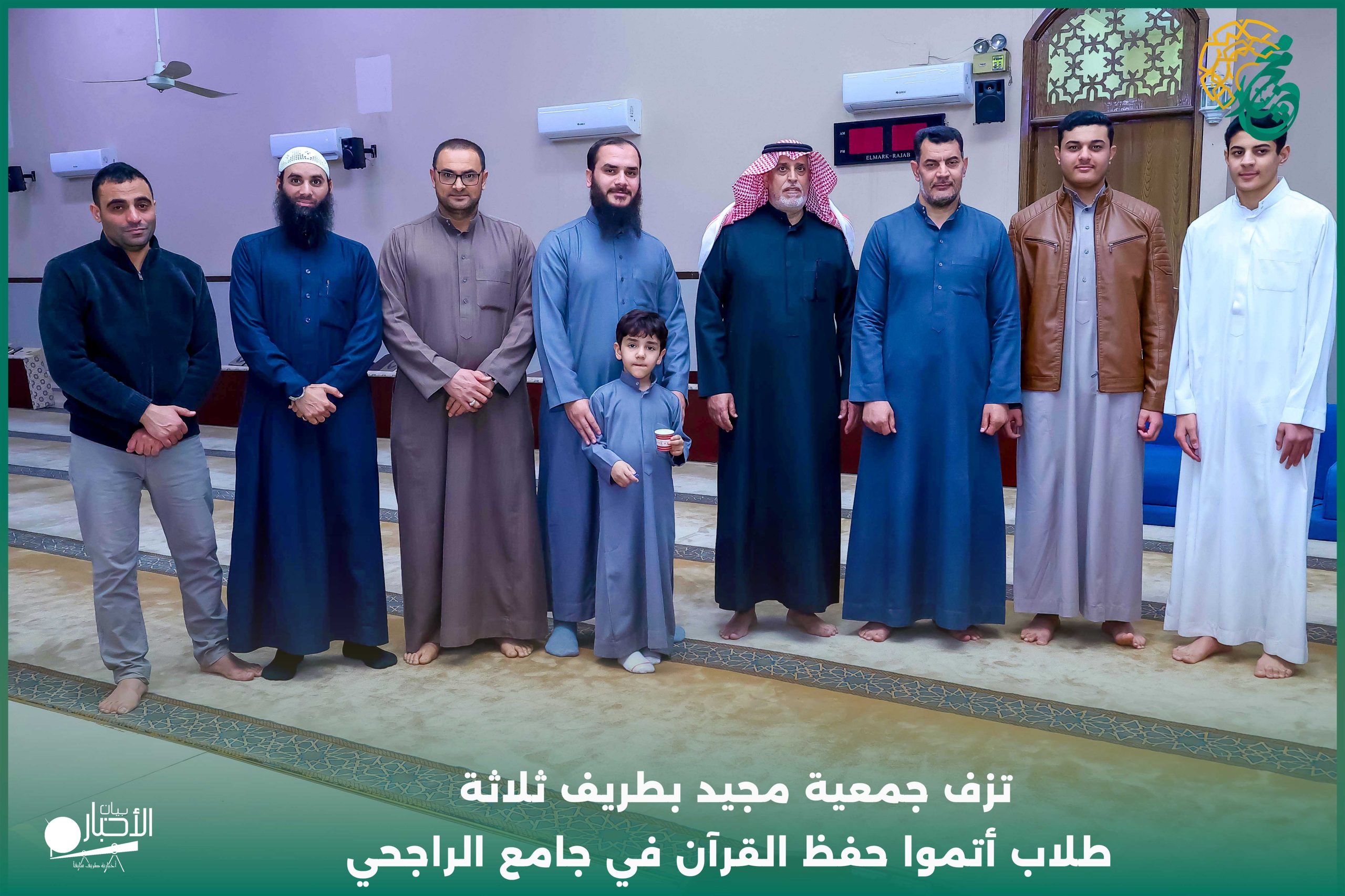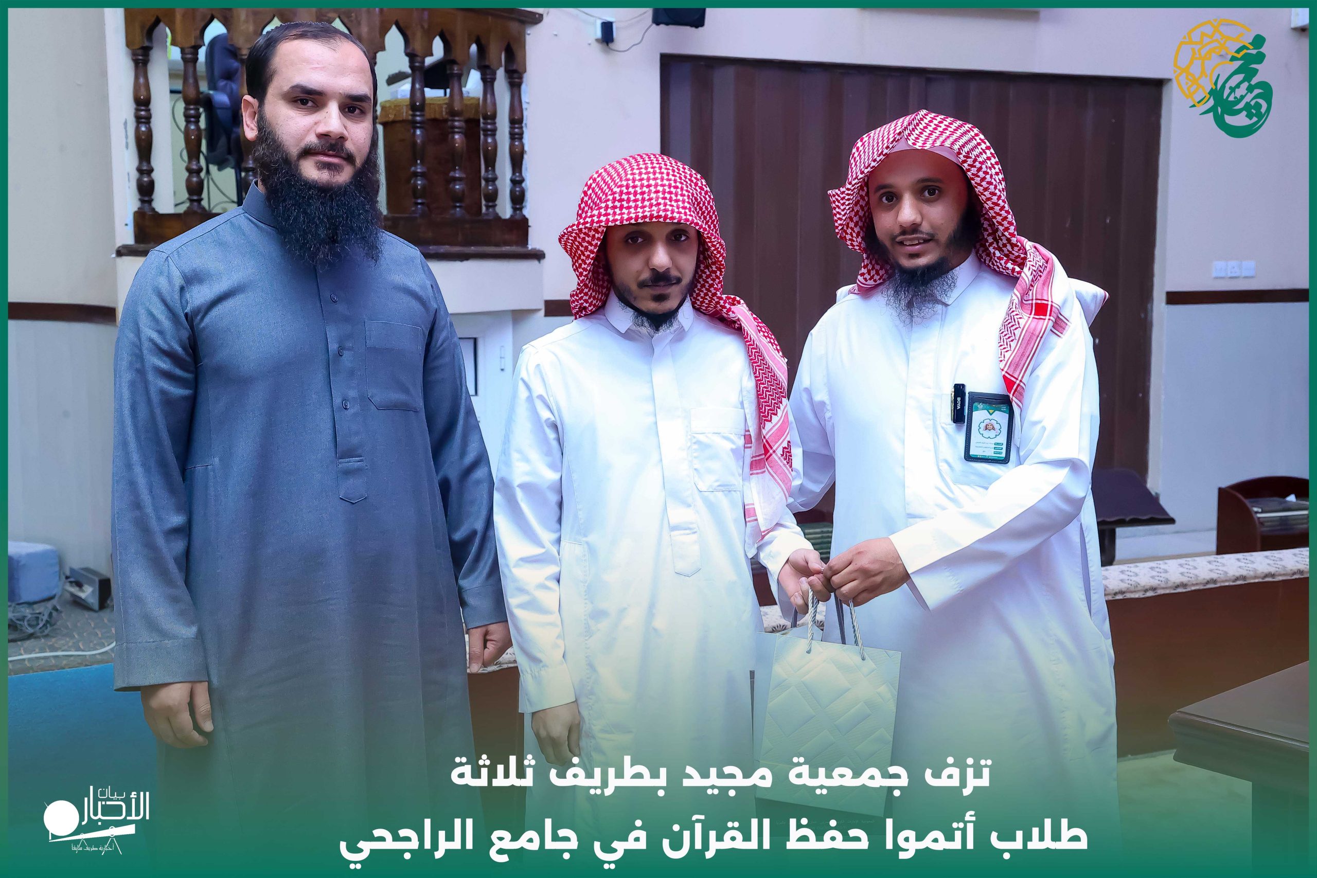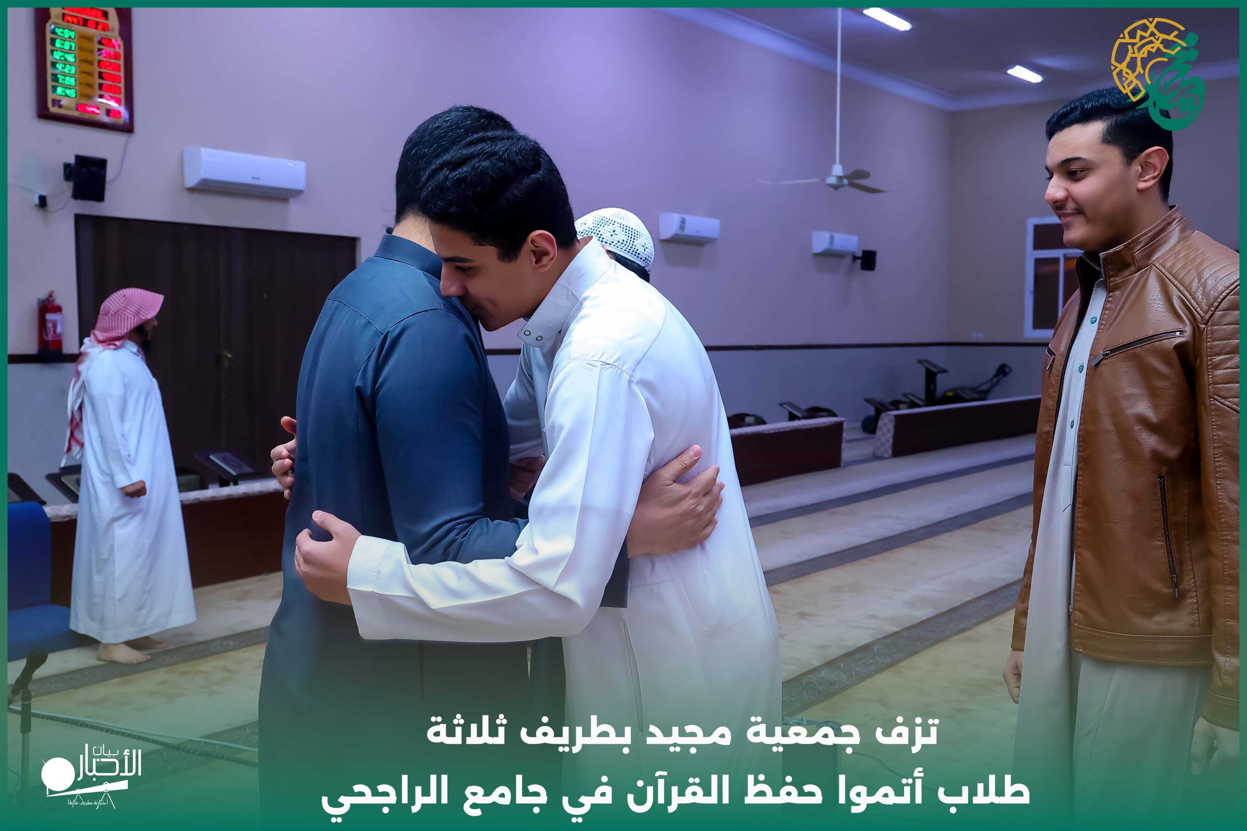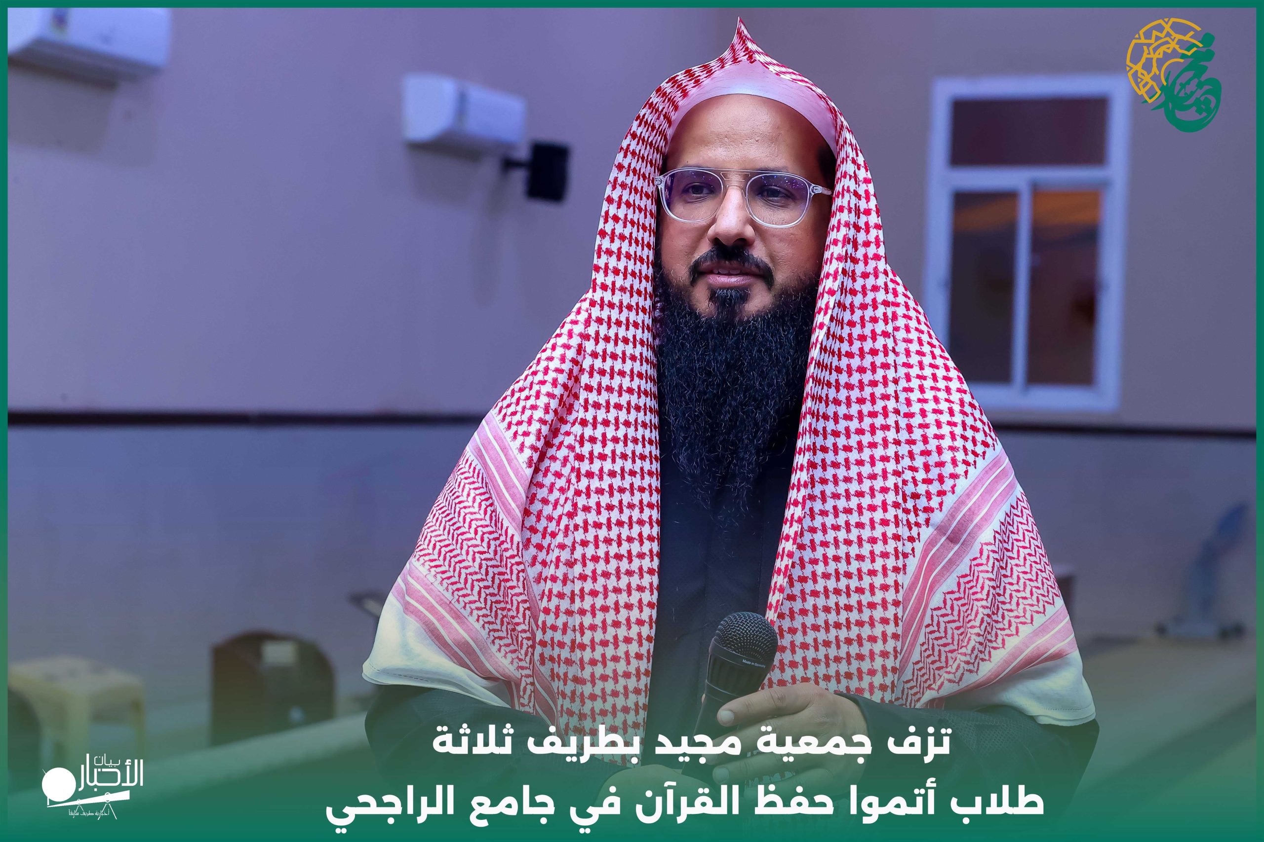 تزفّ جمعية مجيد لتحفيظ القرآن الكريم بمحافظة طريف أجمل البشائر، حيث شهدت المدرسة القرآنية بجامع الراجحي احتفاءً مميزًا بإتمام ثلاثة من طلابها حفظ كتاب الله تعالى، وذلك في أجواء إيمانية مفعمة بالفرح والسرور.