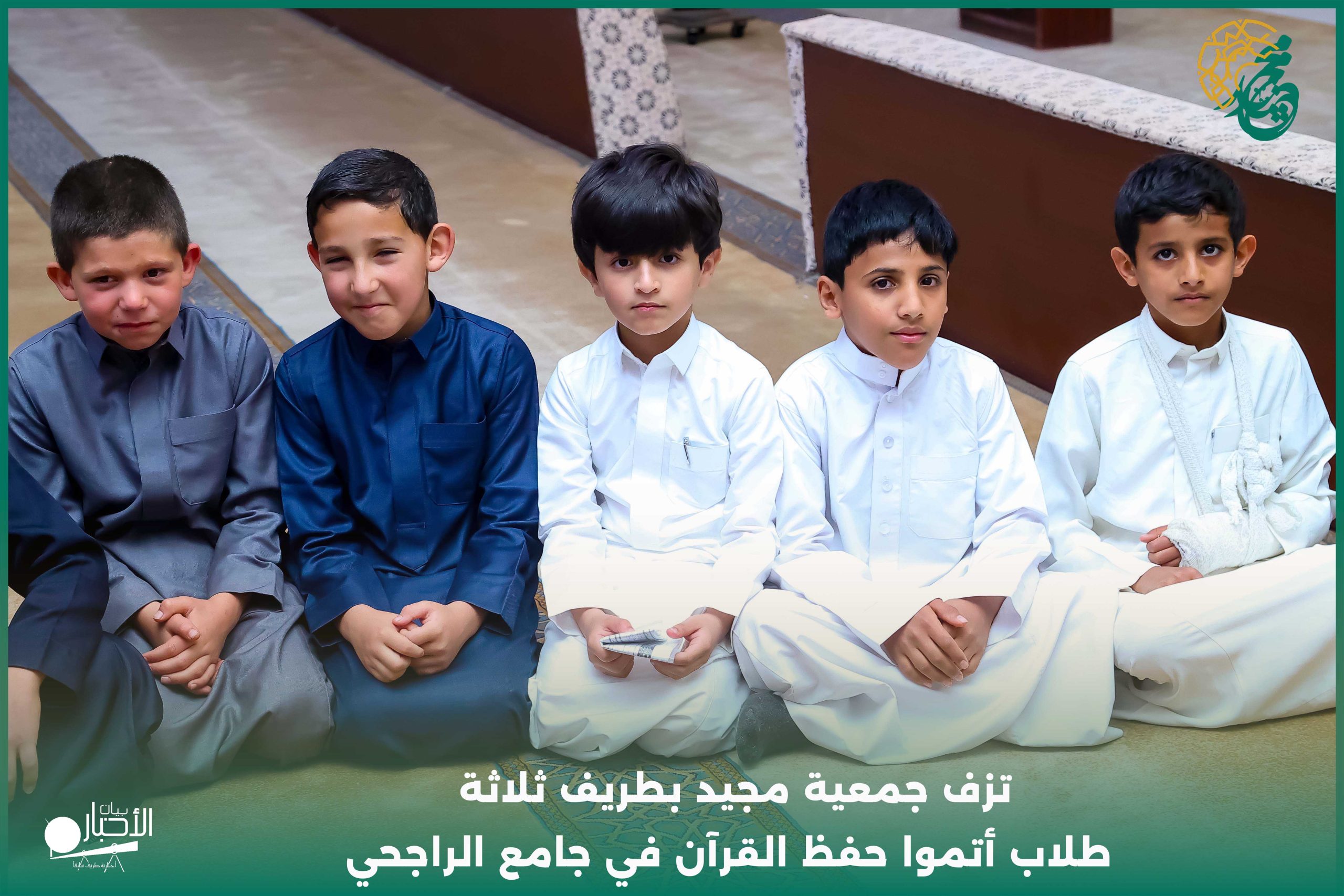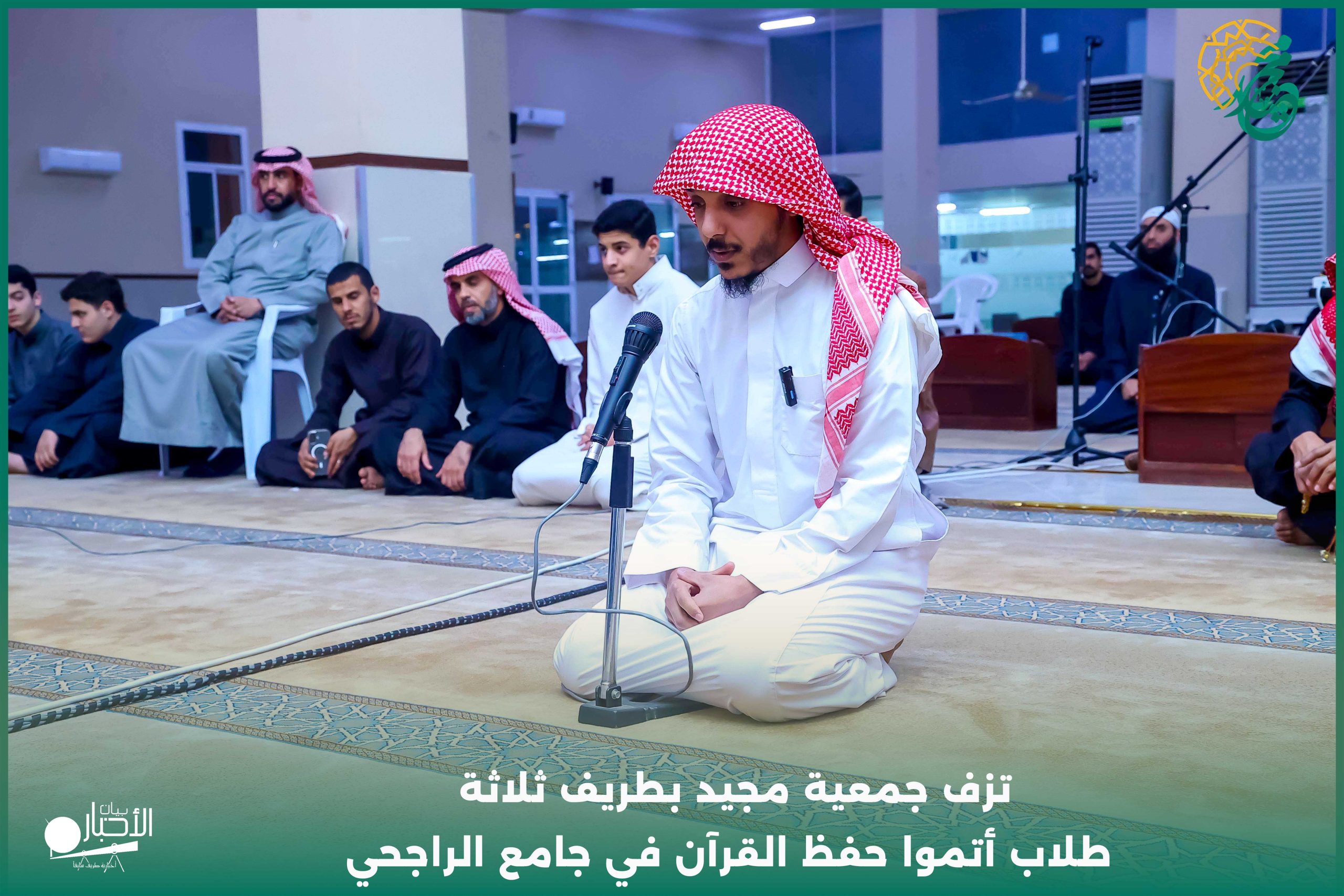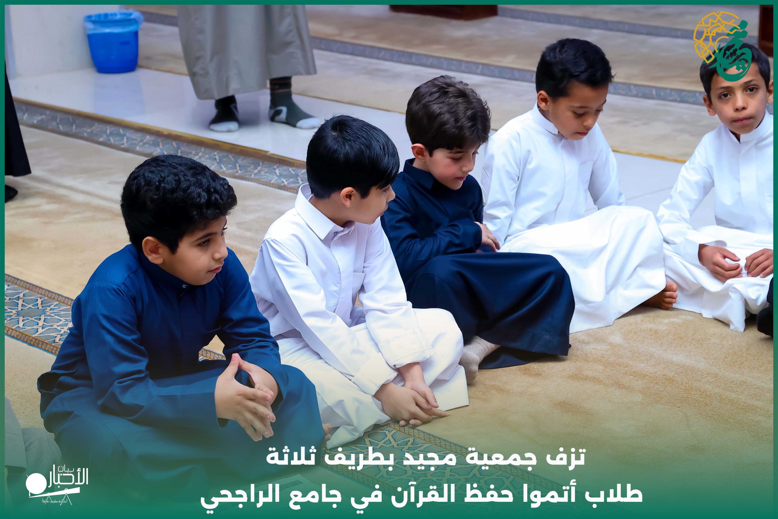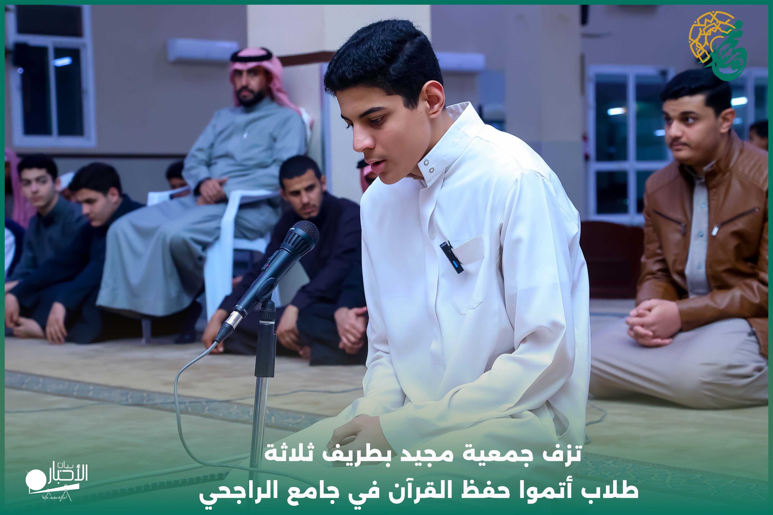 تزفّ جمعية مجيد لتحفيظ القرآن الكريم بمحافظة طريف أجمل البشائر، حيث شهدت المدرسة القرآنية بجامع الراجحي احتفاءً مميزًا بإتمام ثلاثة من طلابها حفظ كتاب الله تعالى، وذلك في أجواء إيمانية مفعمة بالفرح والسرور.