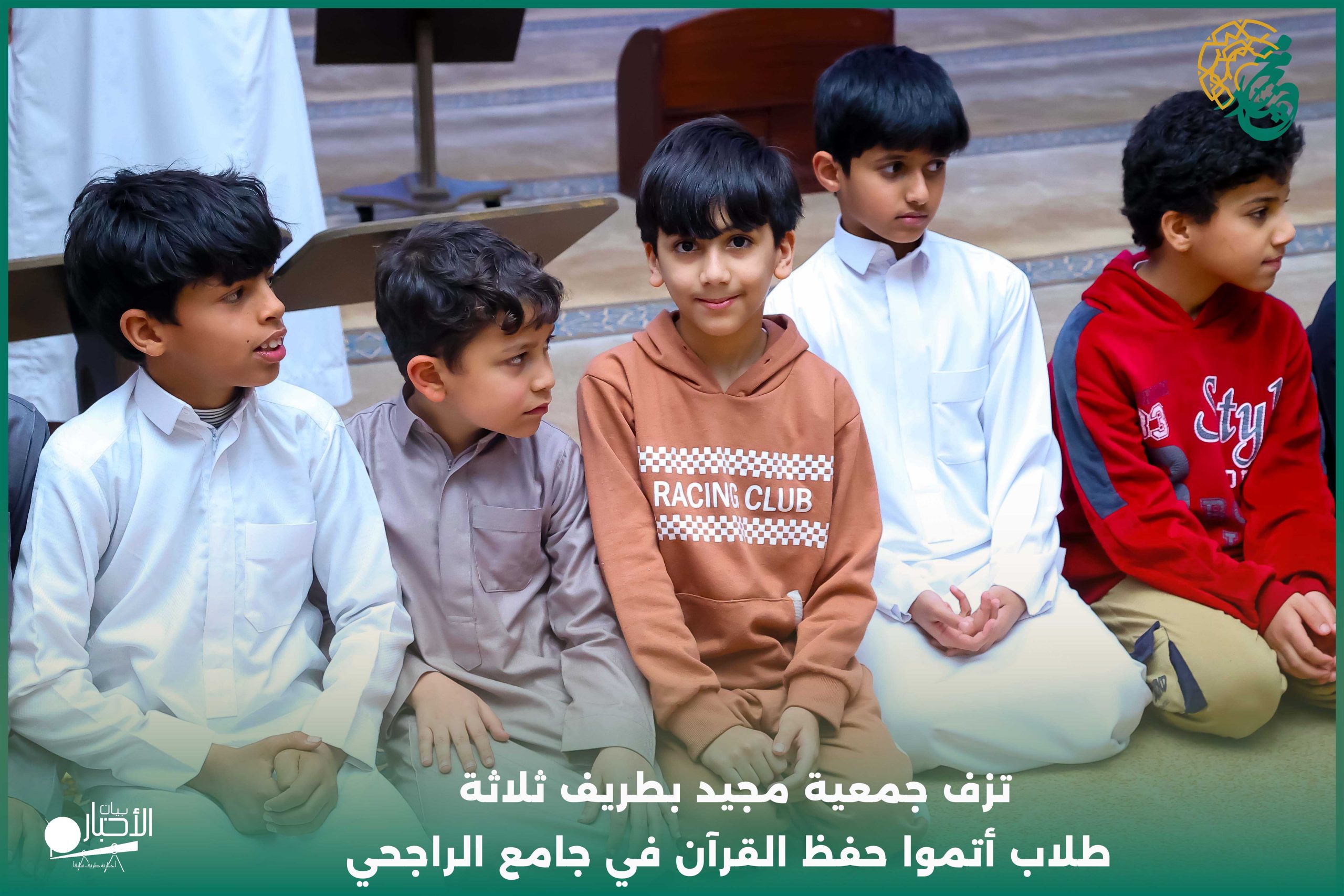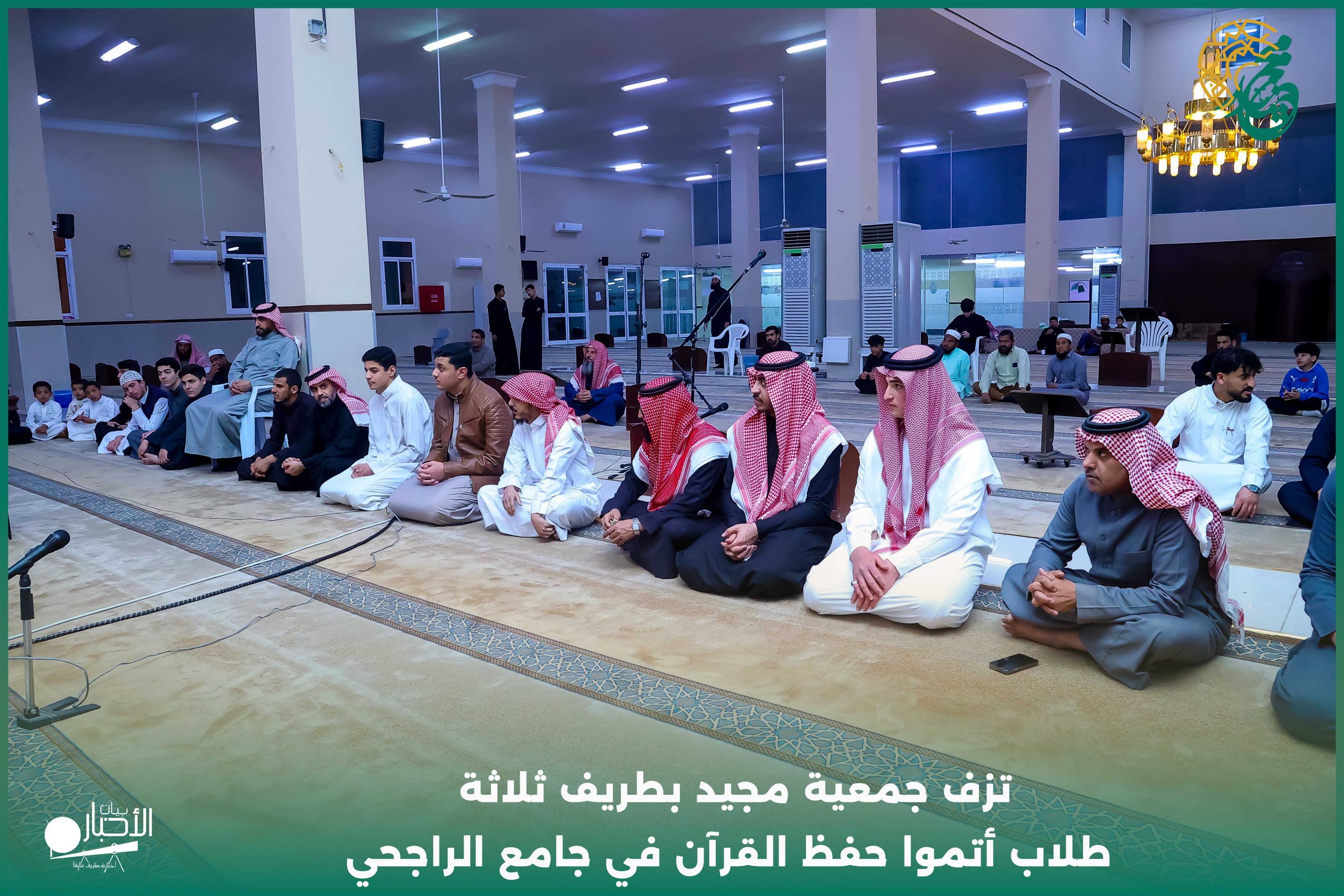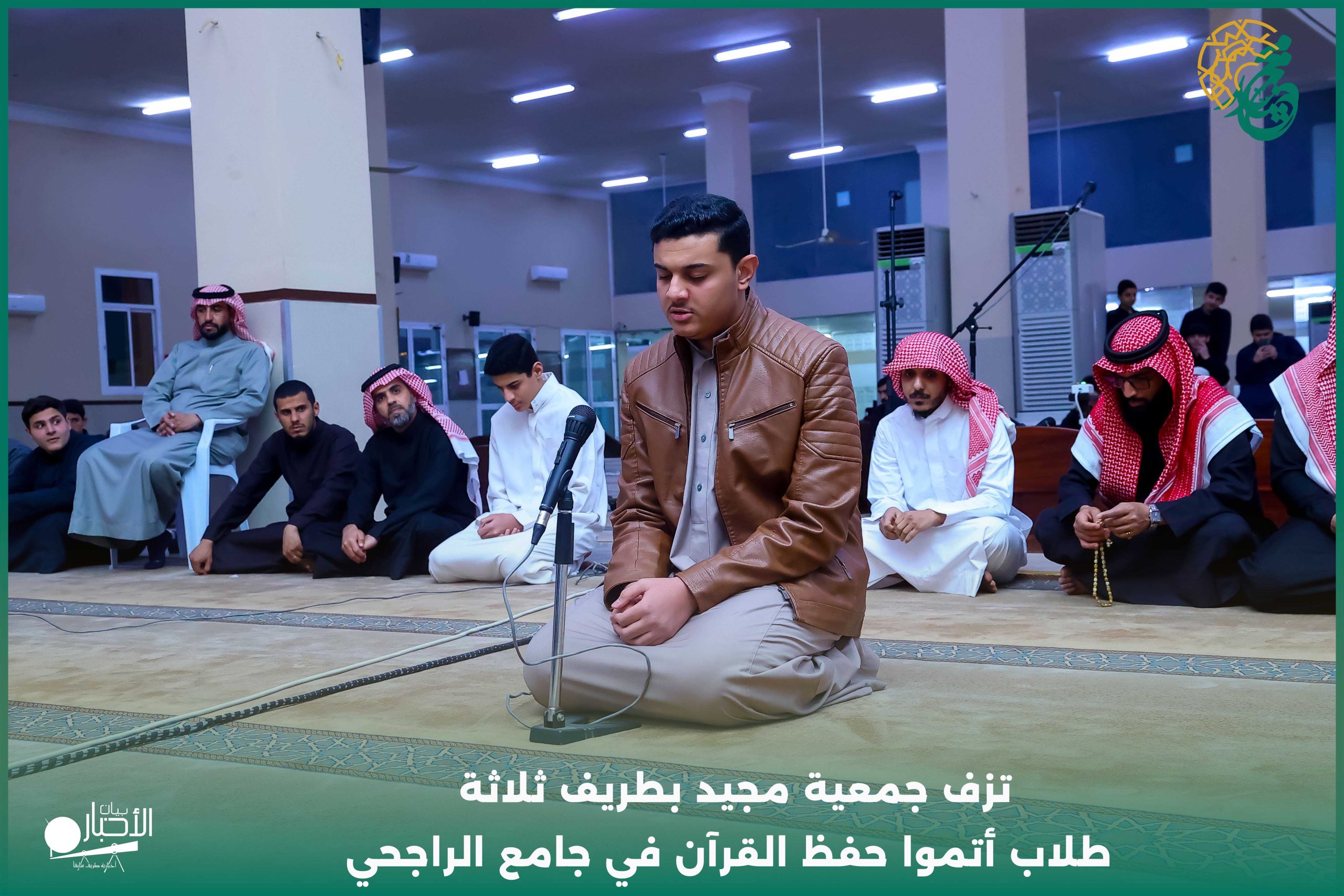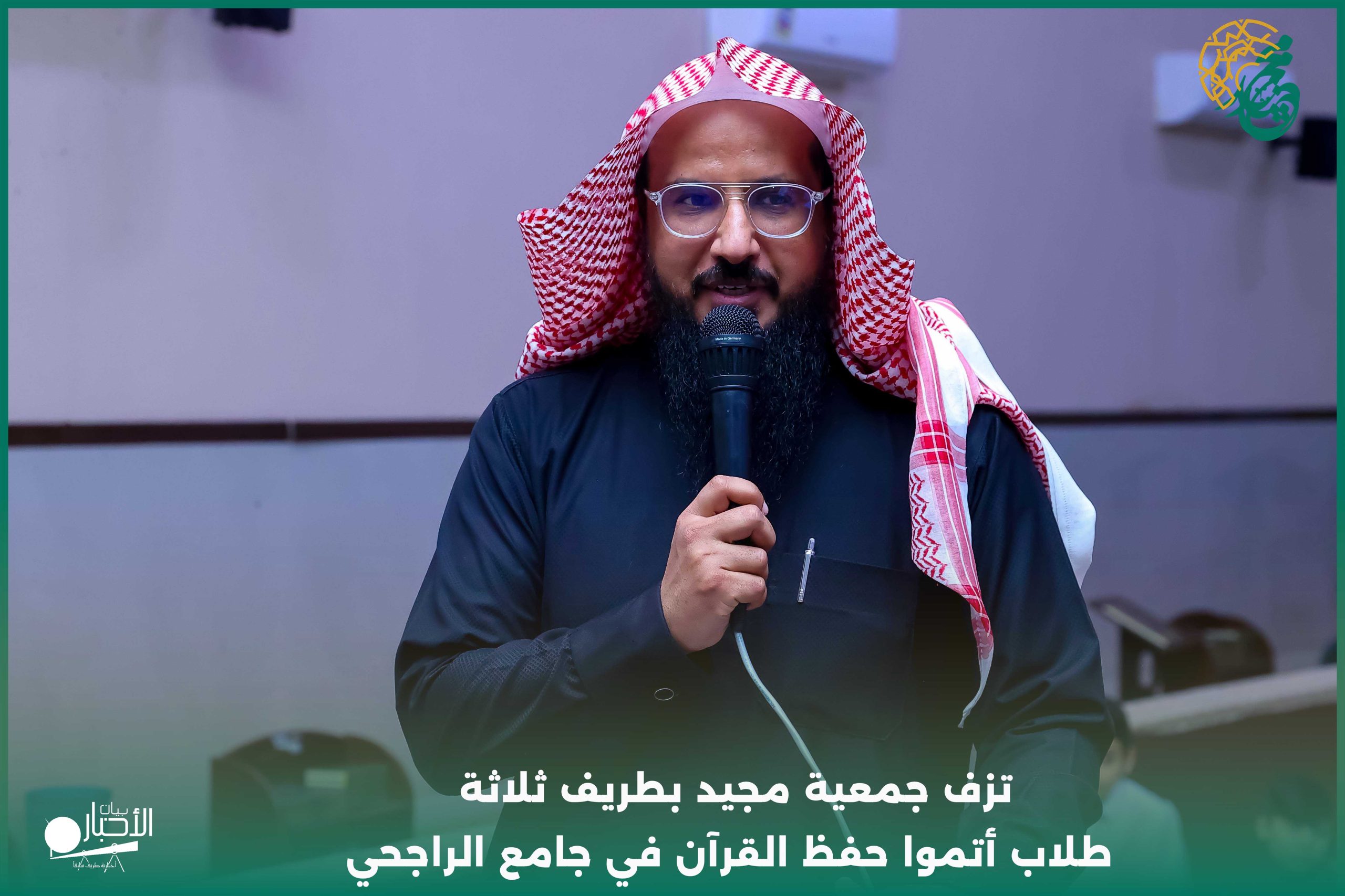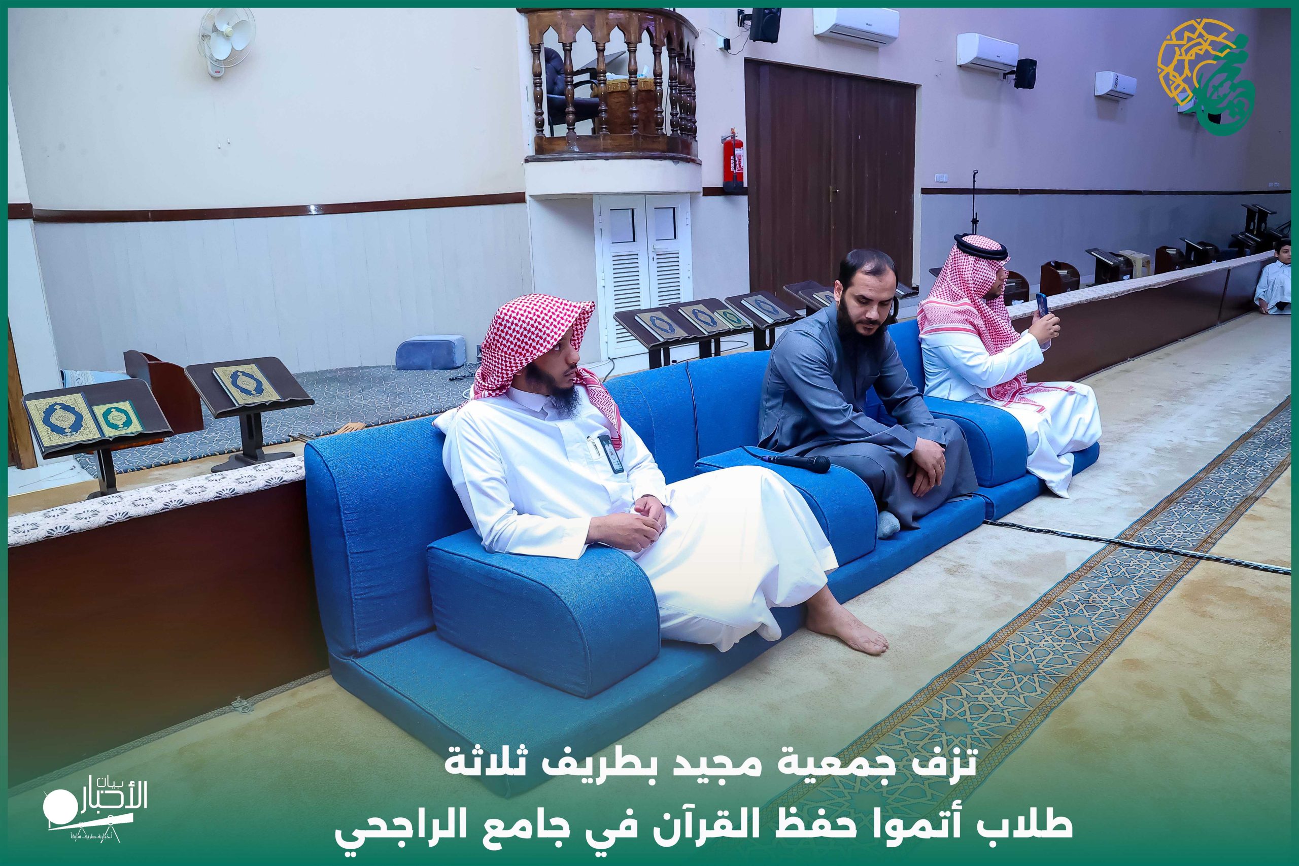 تزفّ جمعية مجيد لتحفيظ القرآن الكريم بمحافظة طريف أجمل البشائر، حيث شهدت المدرسة القرآنية بجامع الراجحي احتفاءً مميزًا بإتمام ثلاثة من طلابها حفظ كتاب الله تعالى، وذلك في أجواء إيمانية مفعمة بالفرح والسرور.