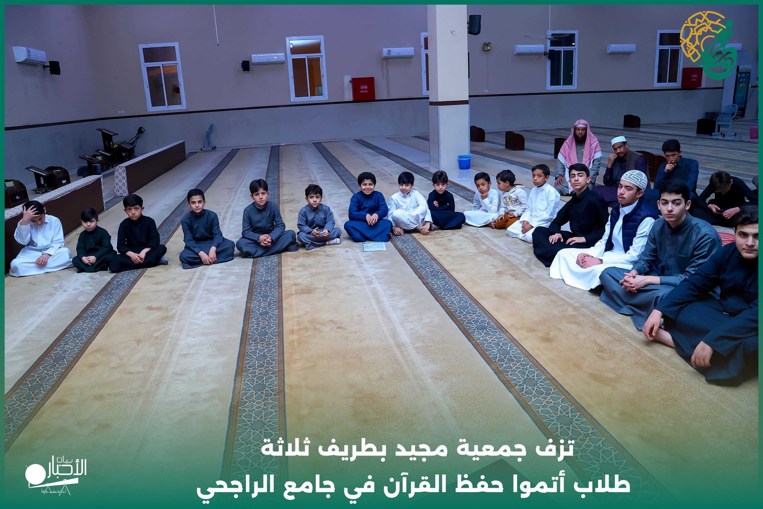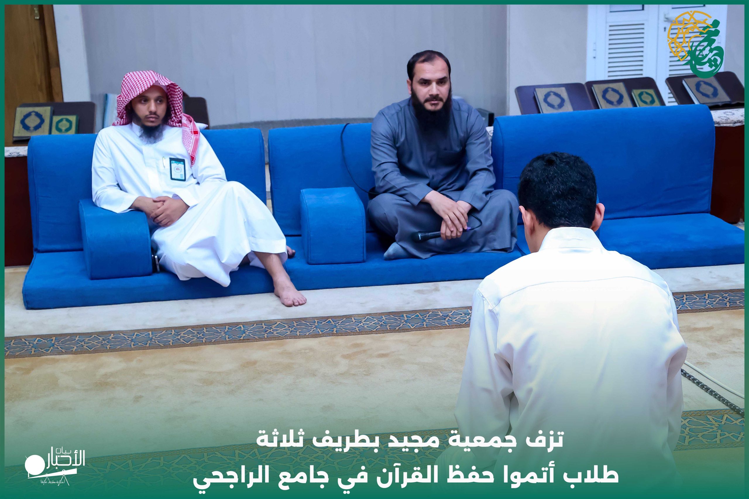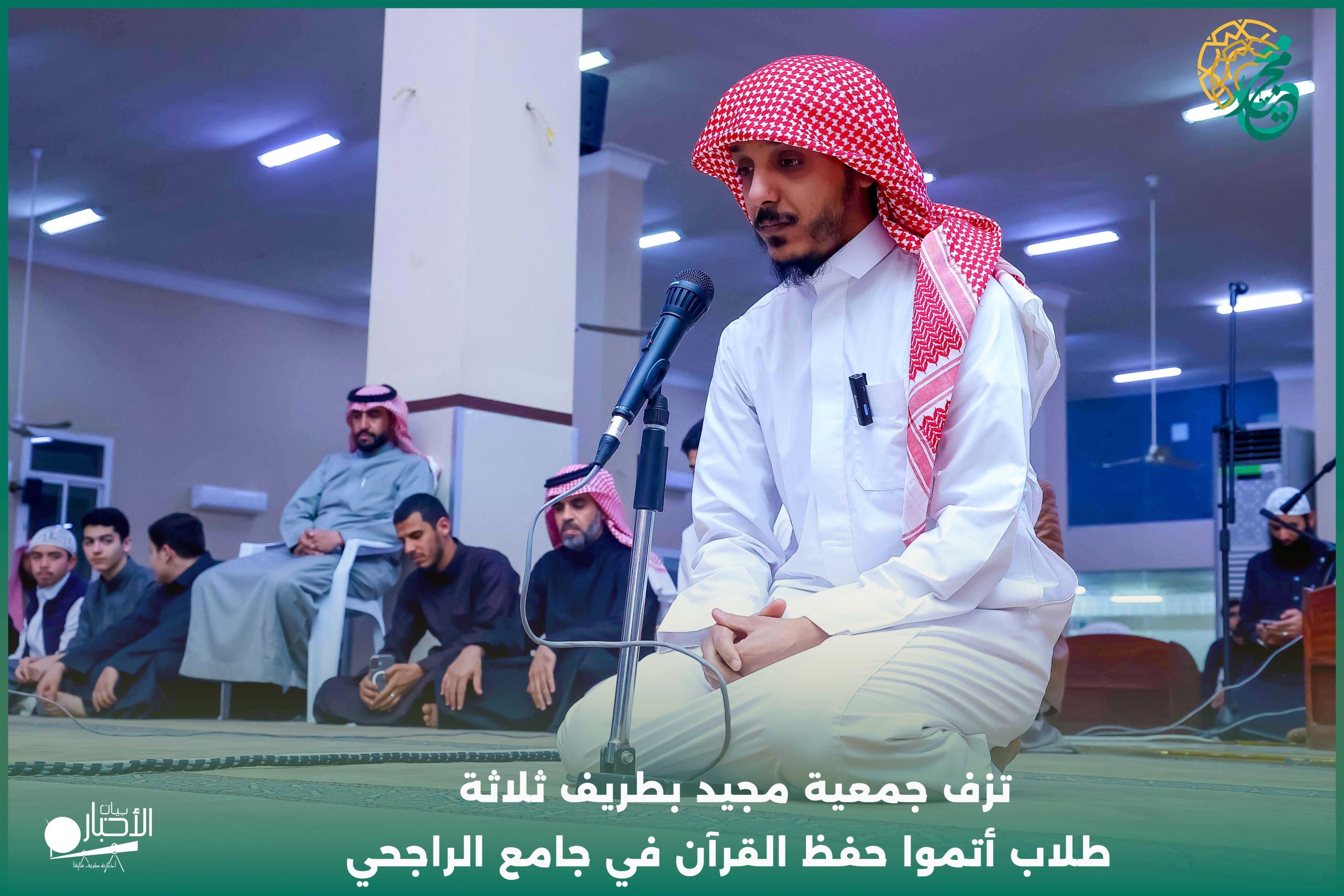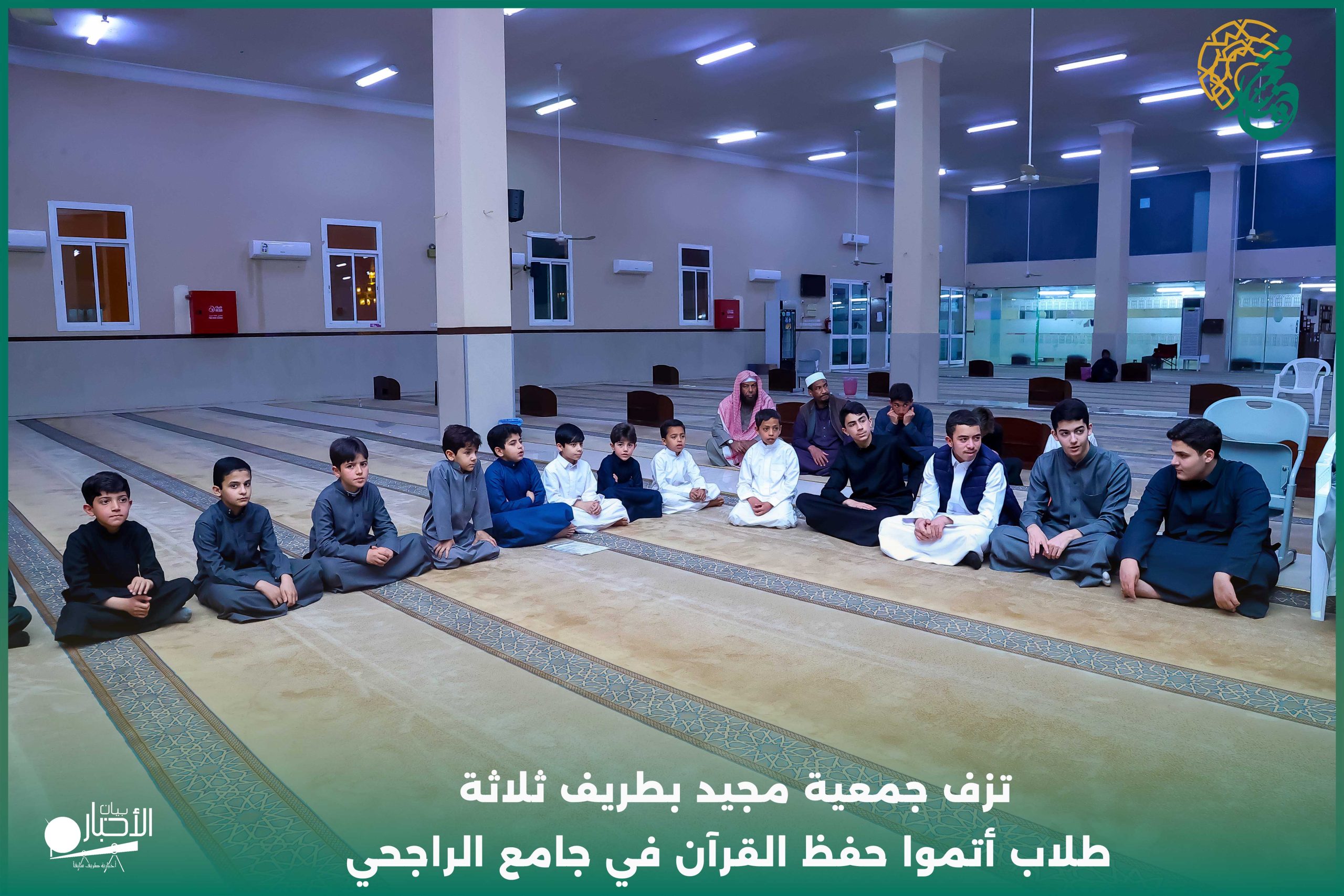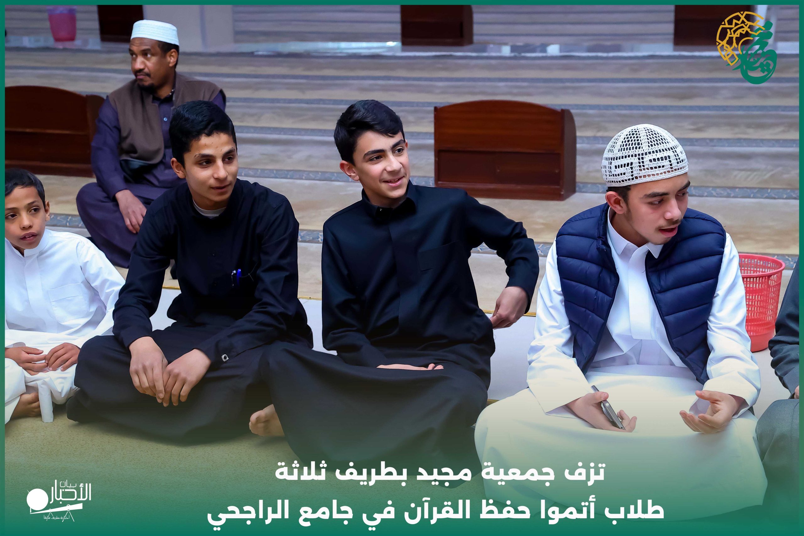 تزفّ جمعية مجيد لتحفيظ القرآن الكريم بمحافظة طريف أجمل البشائر، حيث شهدت المدرسة القرآنية بجامع الراجحي احتفاءً مميزًا بإتمام ثلاثة من طلابها حفظ كتاب الله تعالى، وذلك في أجواء إيمانية مفعمة بالفرح والسرور.