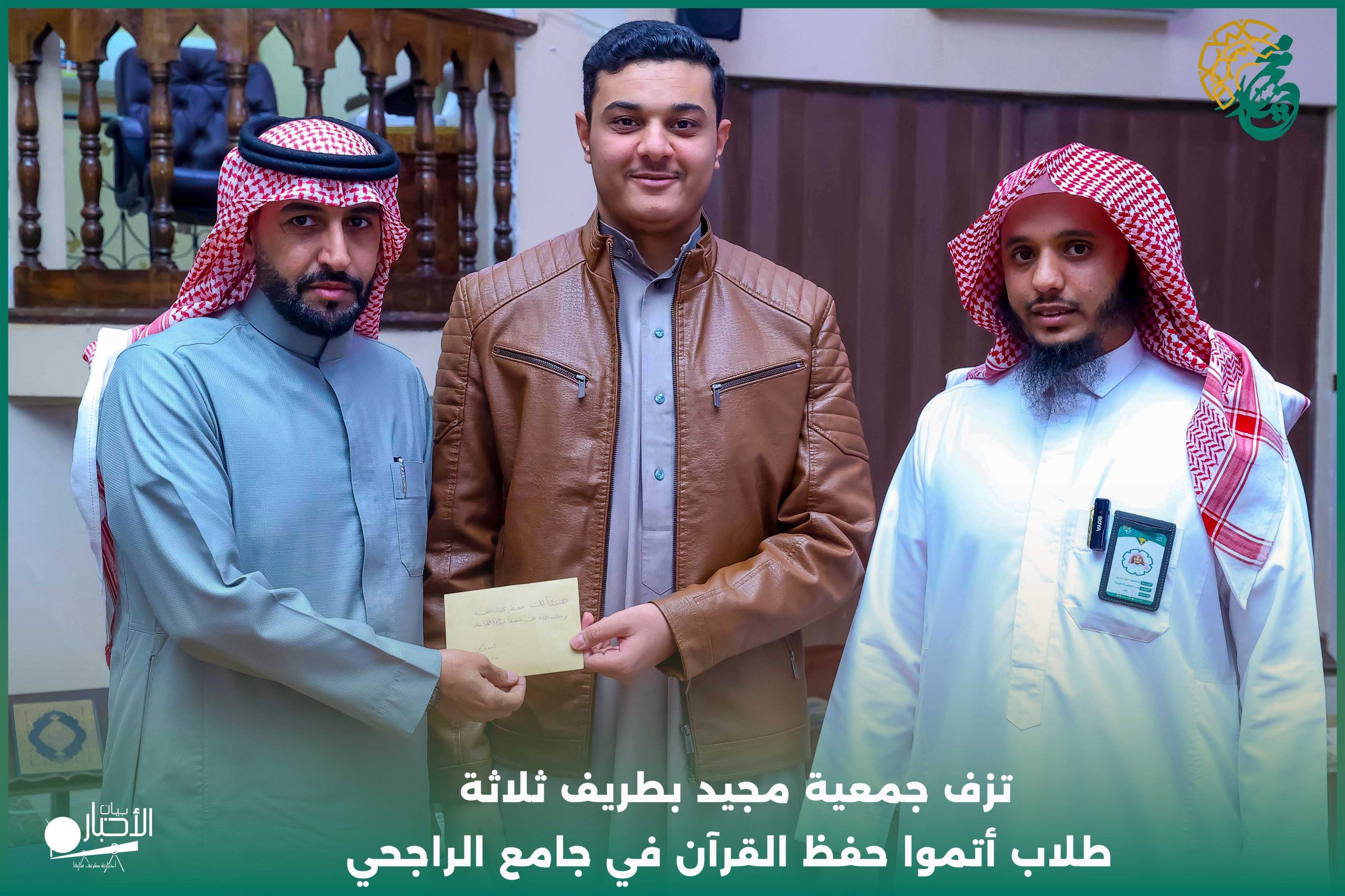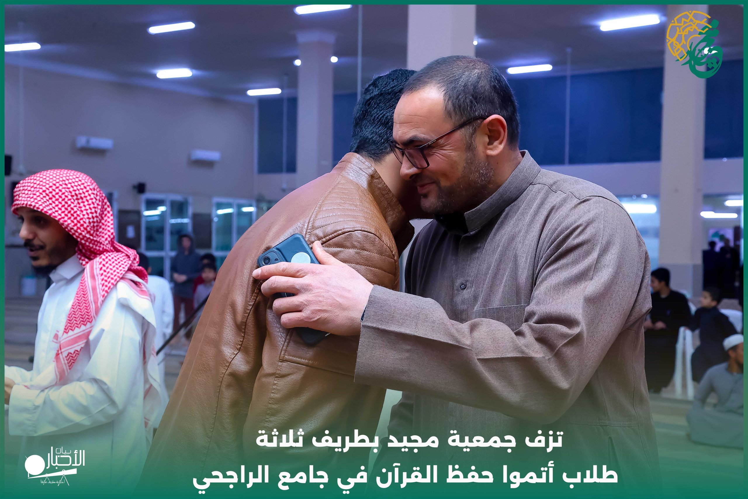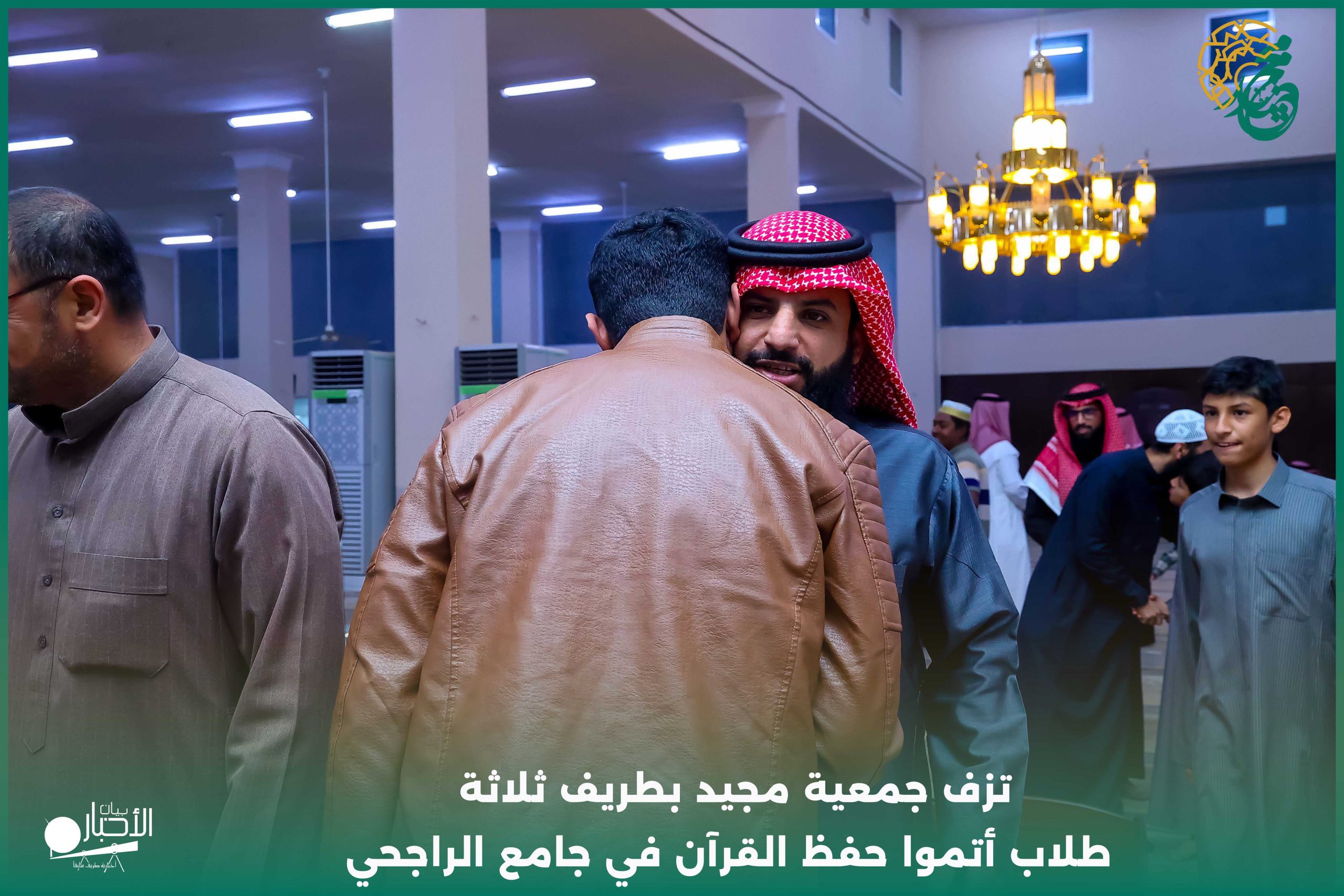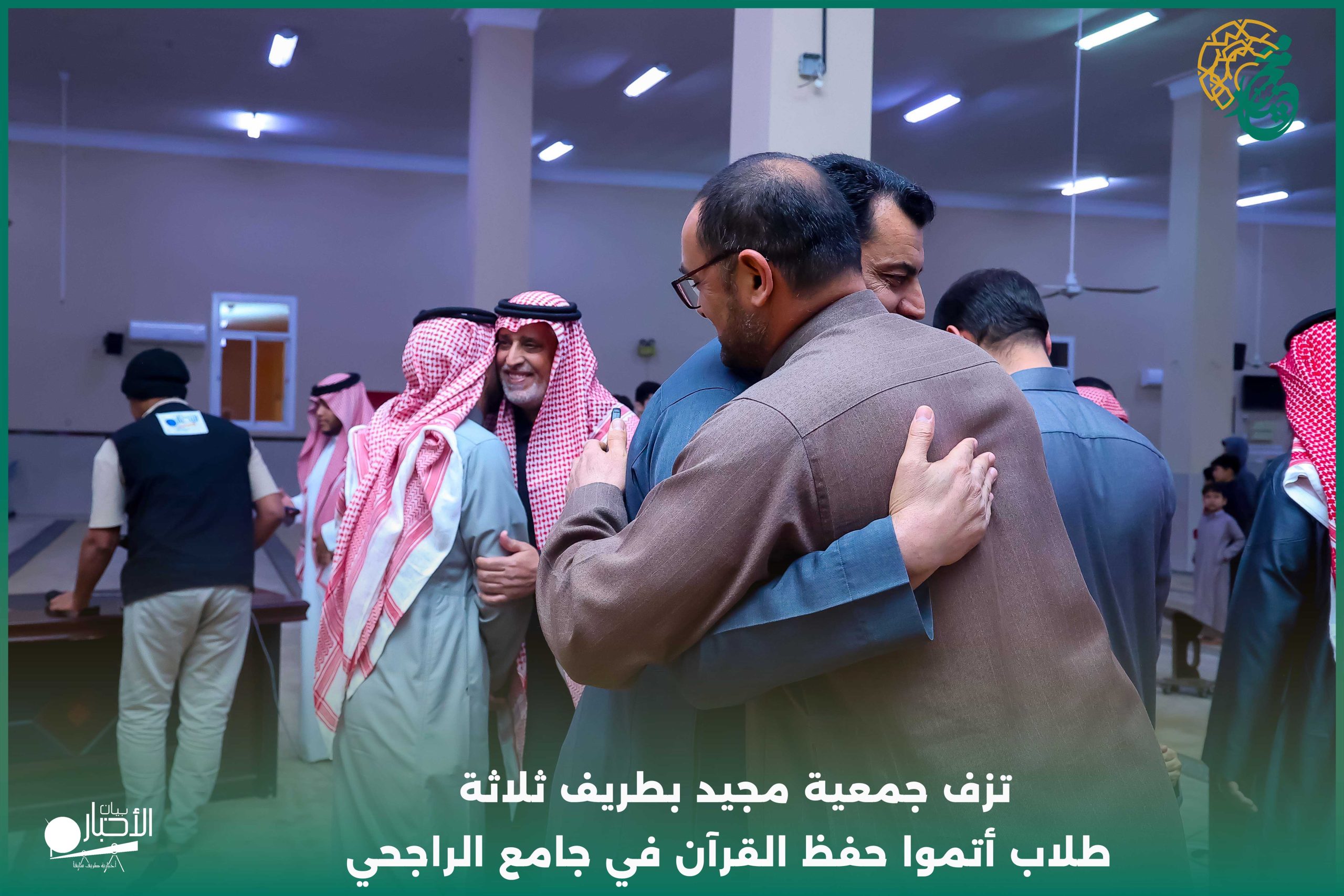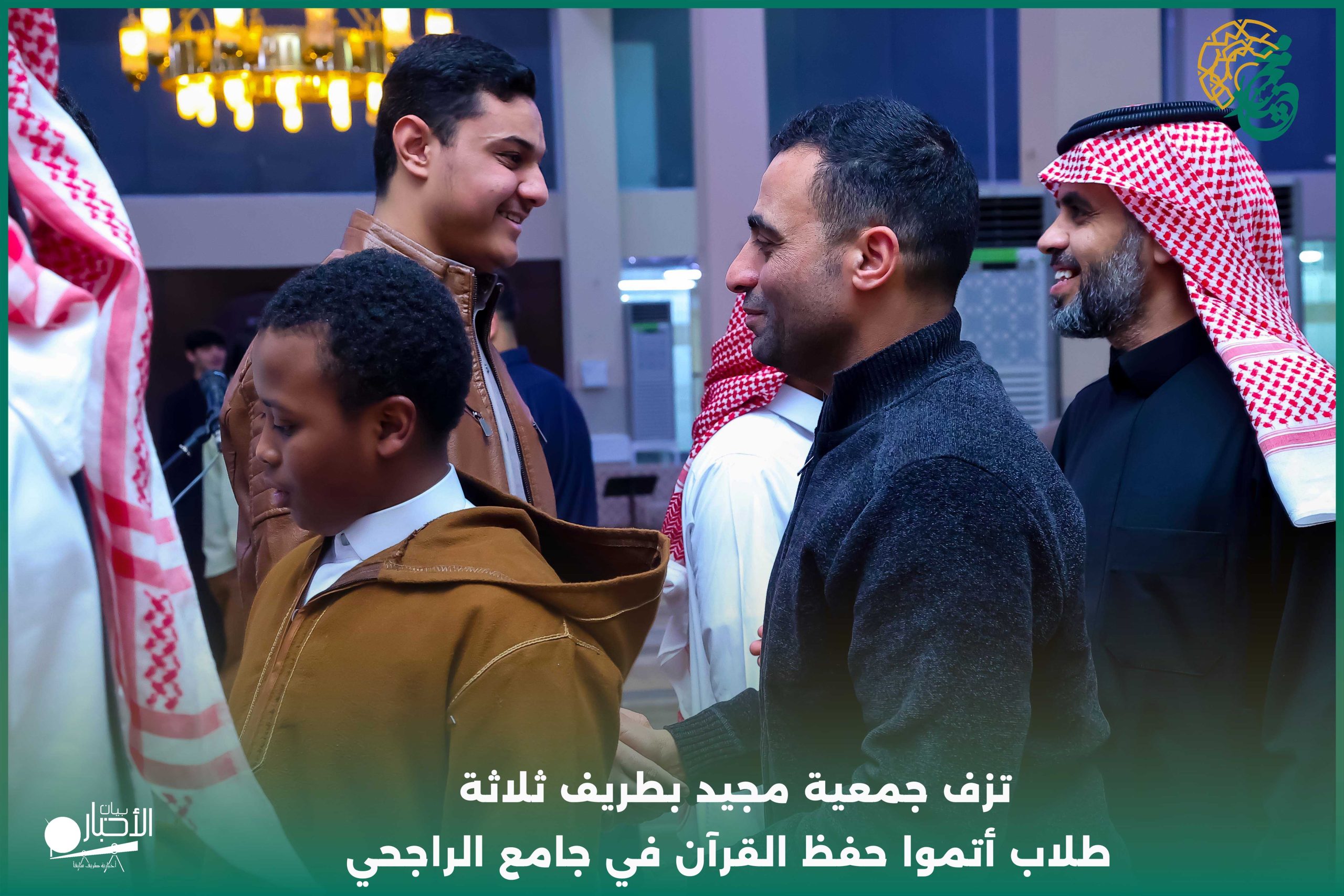 وشارك الخاتمين فرحتهم وفدٌ من منسوبي إدارة جمعية مجيد، إلى جانب جمعٍ من الأهل والأقارب والأصدقاء، الذين قدّموا التهاني والتبريكات، معبّرين عن فخرهم واعتزازهم بهذا الإنجاز العظيم الذي يُعد شرفًا كبيرًا وفضلًا من الله تعالى.