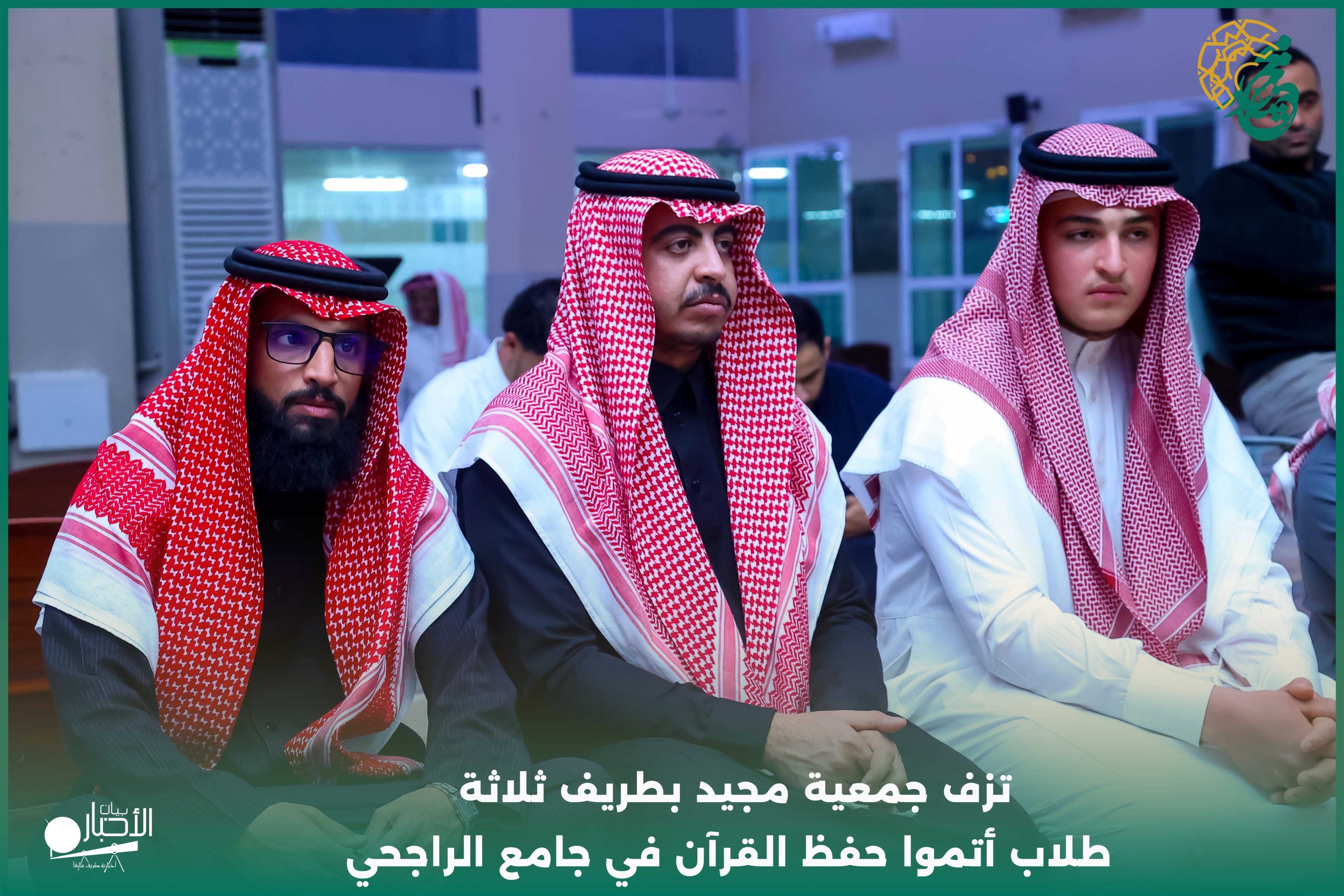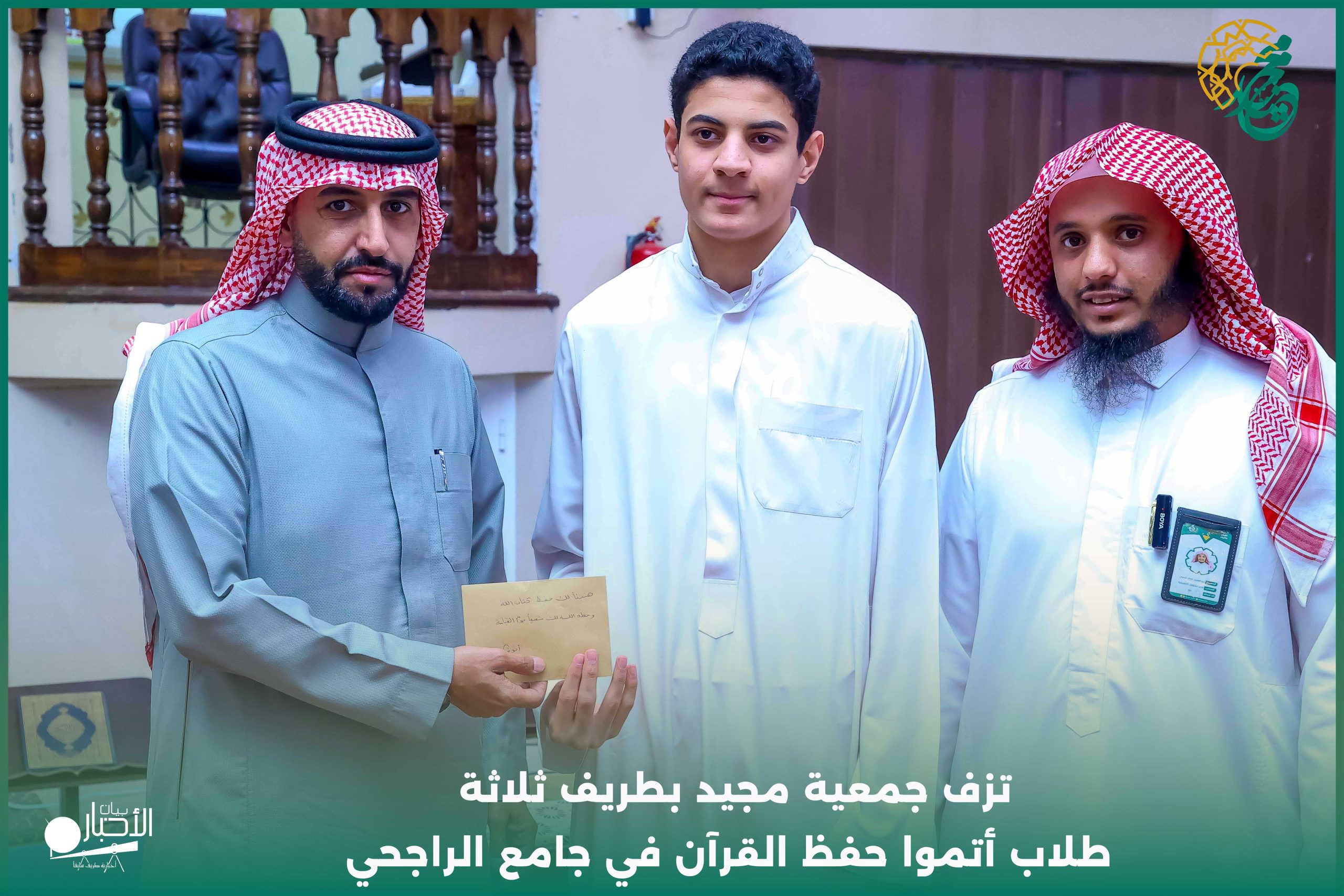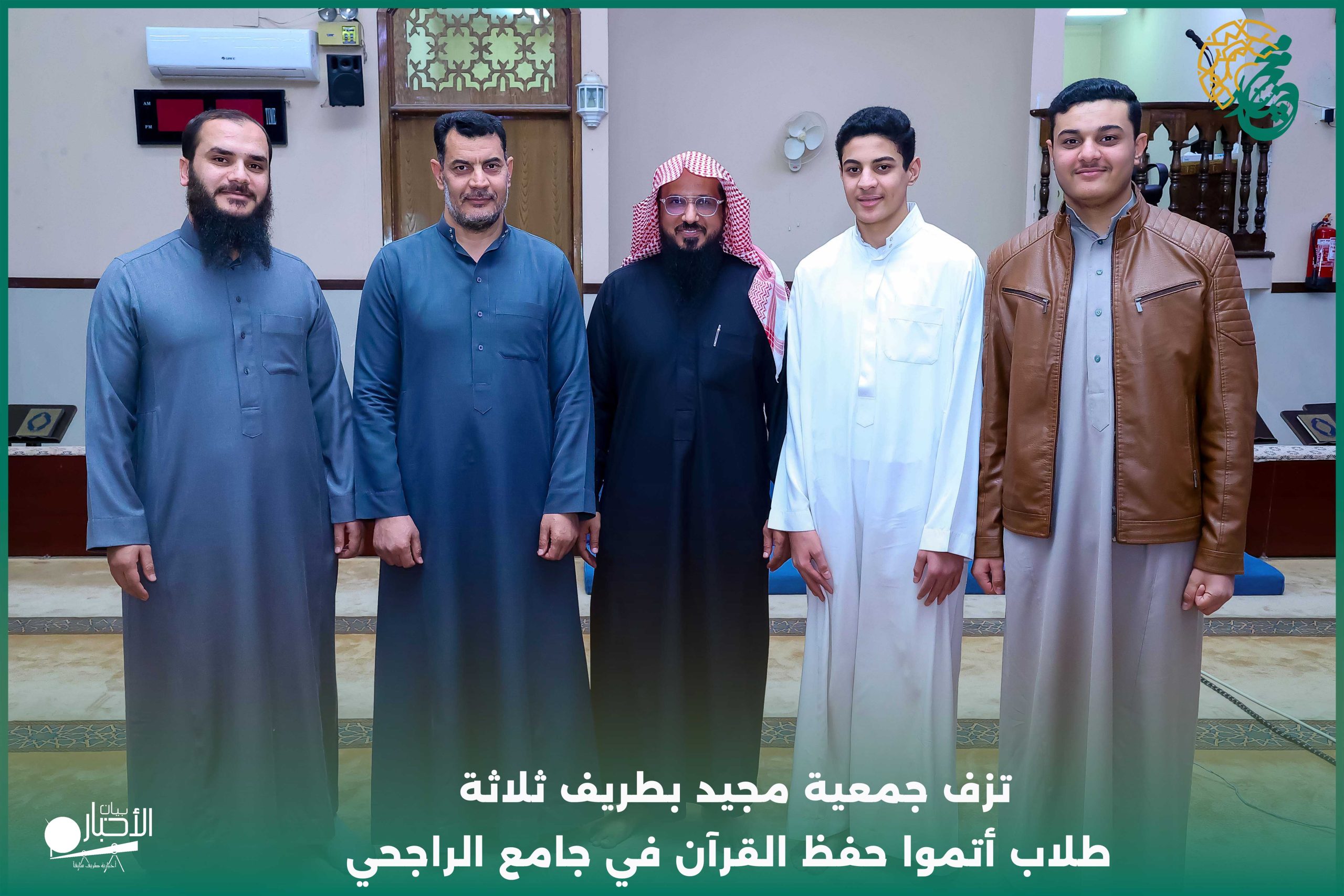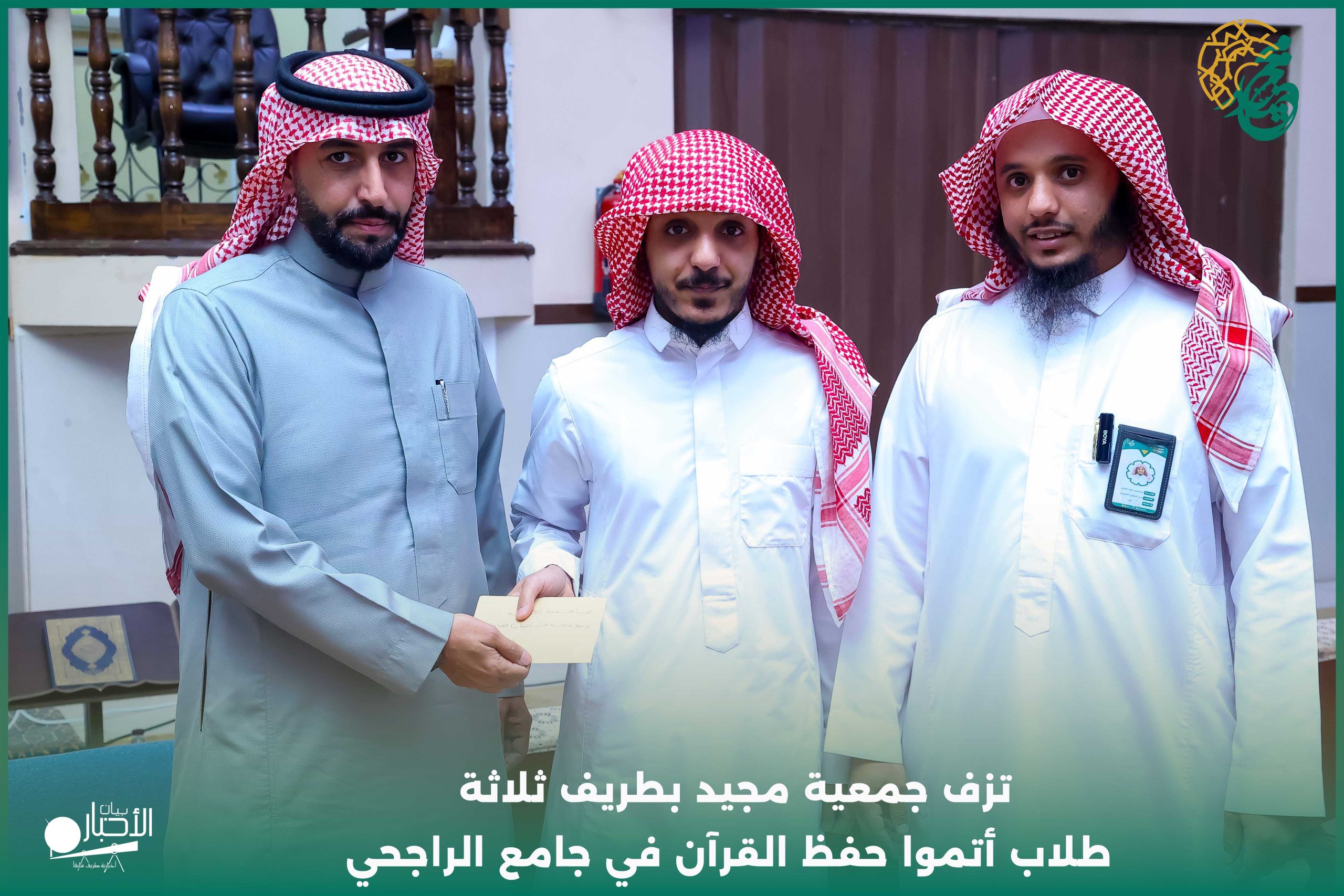 وشارك الخاتمين فرحتهم وفدٌ من منسوبي إدارة جمعية مجيد، إلى جانب جمعٍ من الأهل والأقارب والأصدقاء، الذين قدّموا التهاني والتبريكات، معبّرين عن فخرهم واعتزازهم بهذا الإنجاز العظيم الذي يُعد شرفًا كبيرًا وفضلًا من الله تعالى.