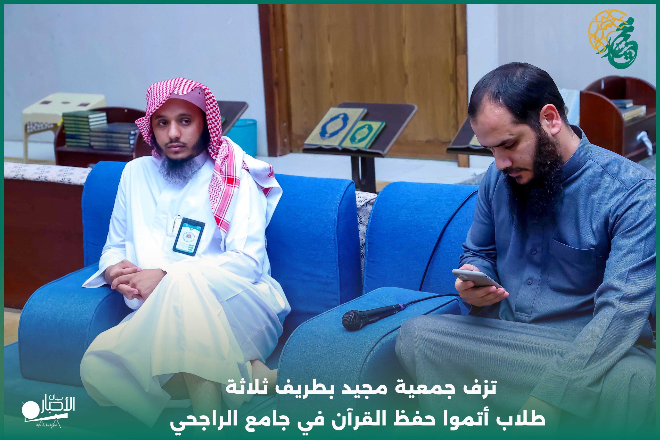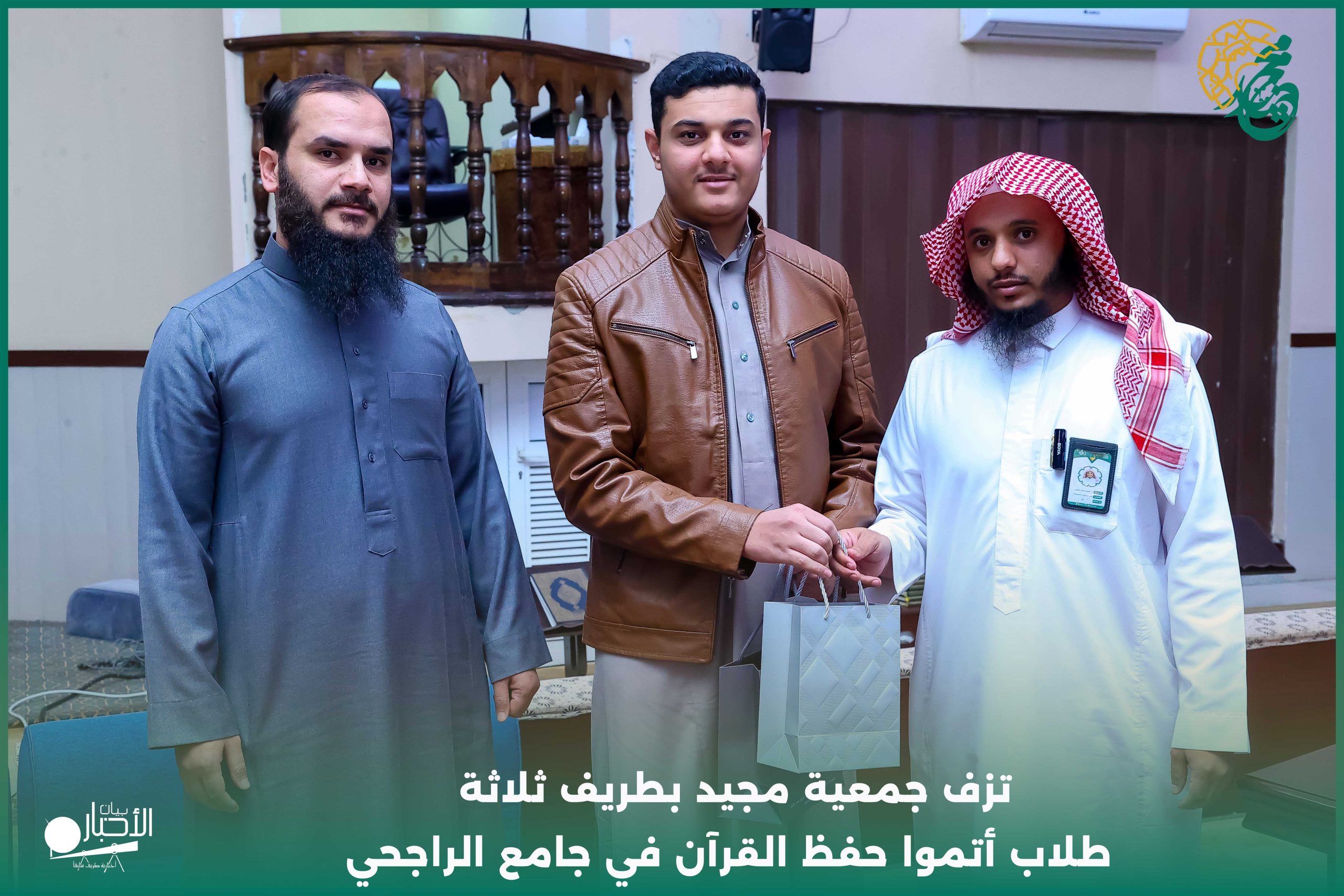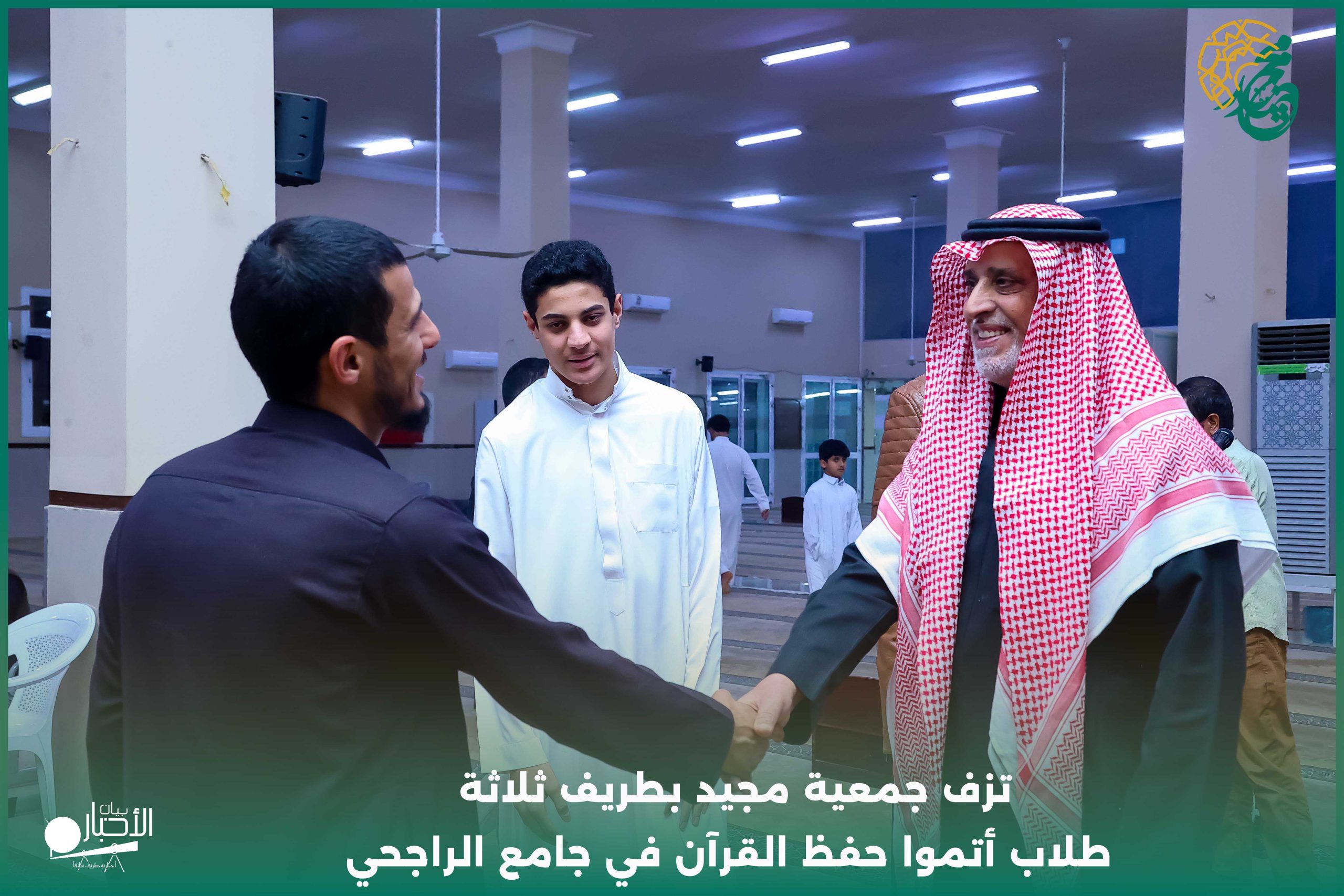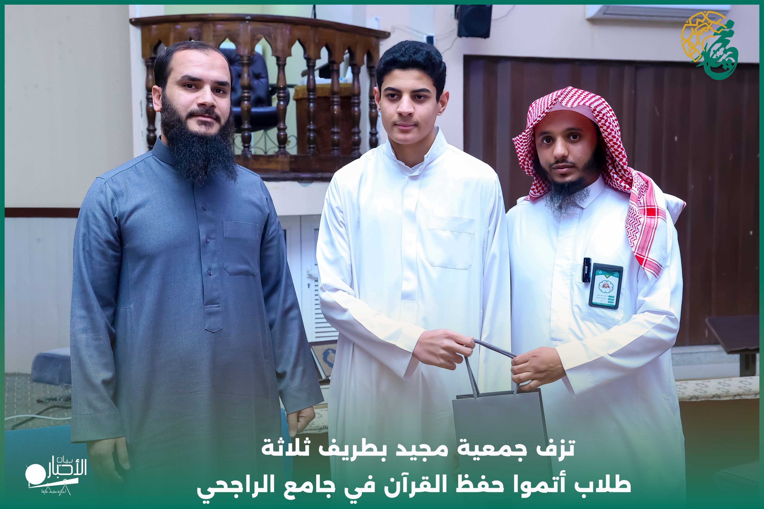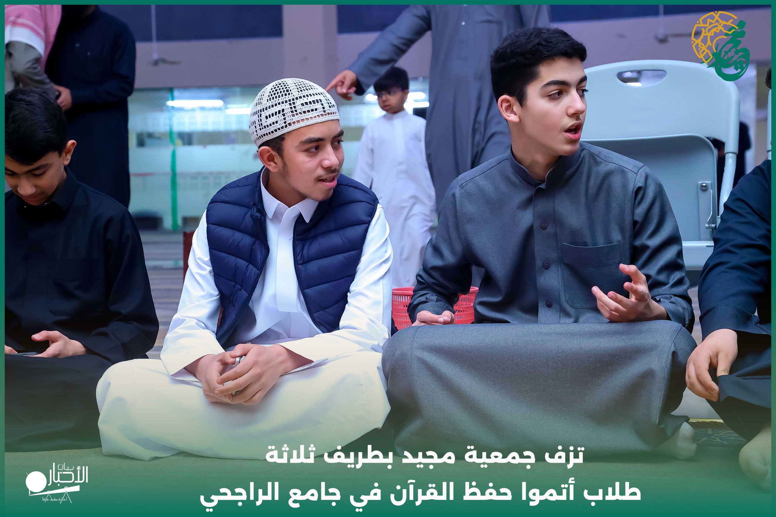 وشارك الخاتمين فرحتهم وفدٌ من منسوبي إدارة جمعية مجيد، إلى جانب جمعٍ من الأهل والأقارب والأصدقاء، الذين قدّموا التهاني والتبريكات، معبّرين عن فخرهم واعتزازهم بهذا الإنجاز العظيم الذي يُعد شرفًا كبيرًا وفضلًا من الله تعالى.