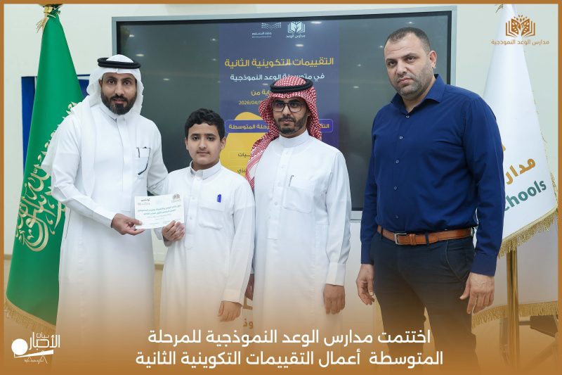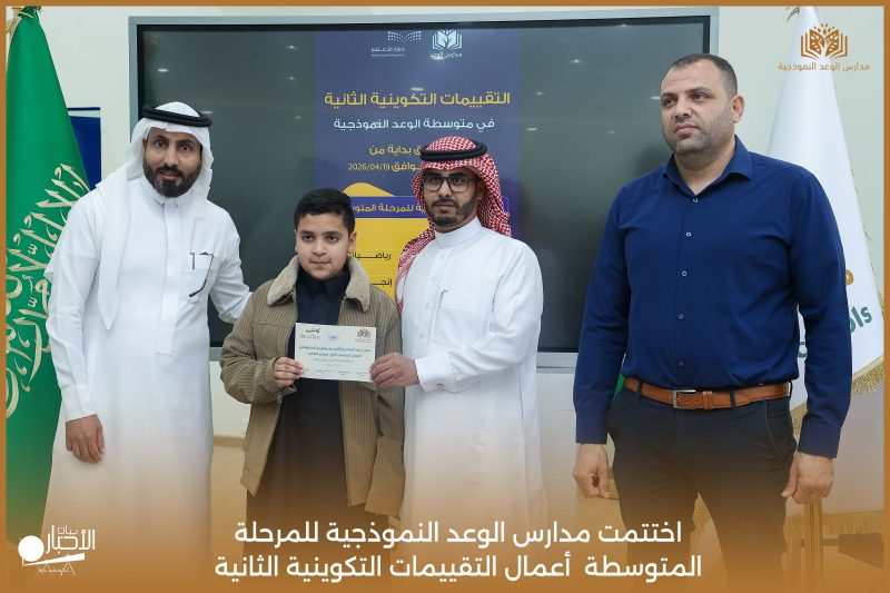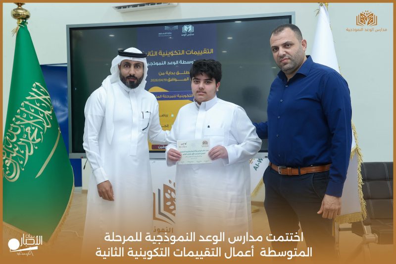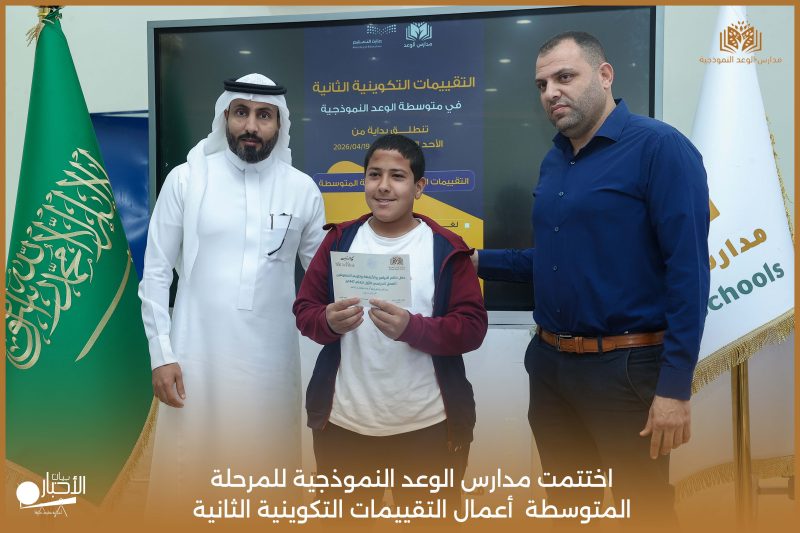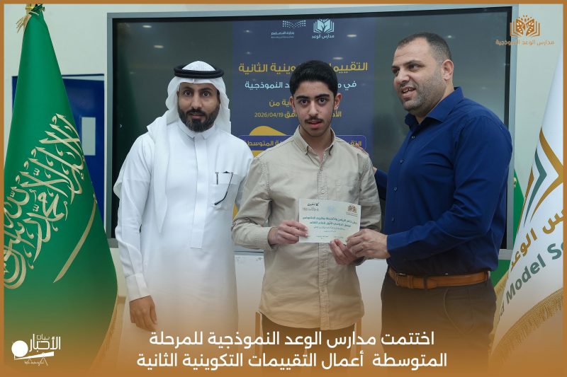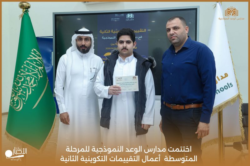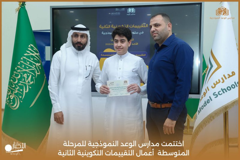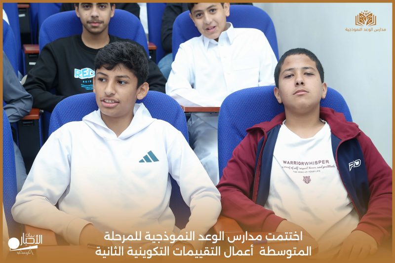 اختتمت مدارس الوعد النموذجية للمرحلة المتوسطة اليوم الثلاثاء الموافق 21 / 4 / 2026م أعمال التقييمات التكوينية الثانية، وسط أجواء تعليمية إيجابية عكست حرص الطلاب على تحقيق أفضل النتائج، وسادت فيها روح الجدية والانضباط.