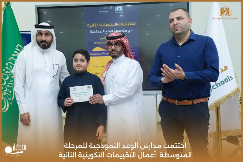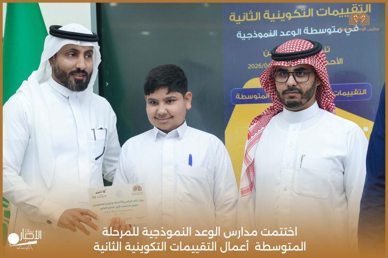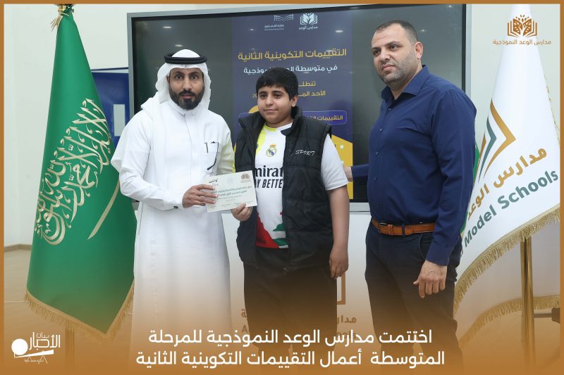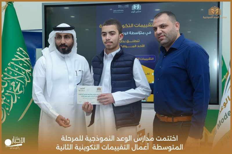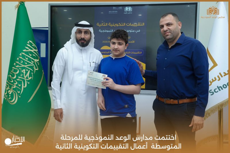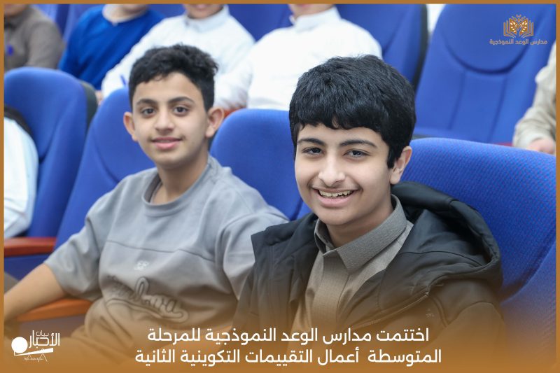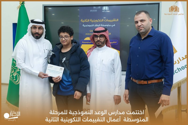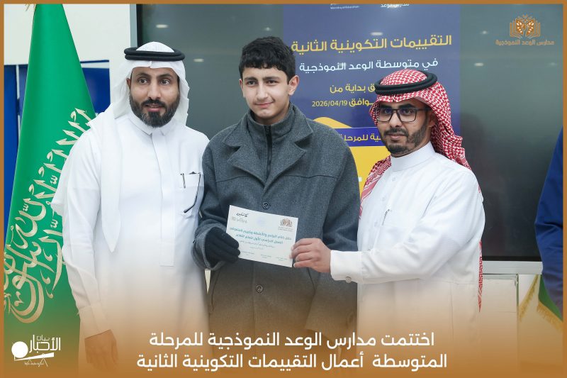 اختتمت مدارس الوعد النموذجية للمرحلة المتوسطة اليوم الثلاثاء الموافق 21 / 4 / 2026م أعمال التقييمات التكوينية الثانية، وسط أجواء تعليمية إيجابية عكست حرص الطلاب على تحقيق أفضل النتائج، وسادت فيها روح الجدية والانضباط.
