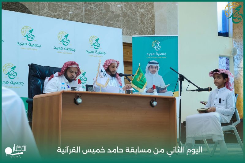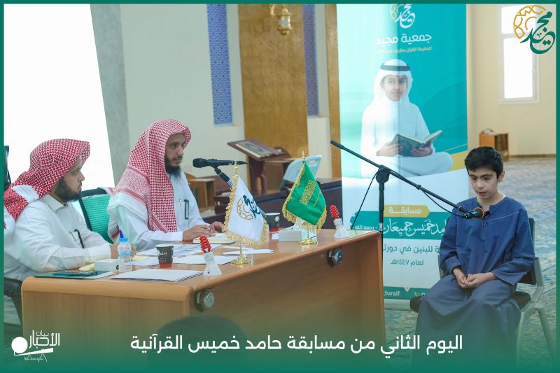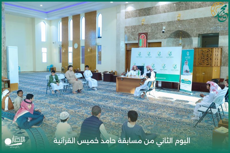 شهدت مسابقة حامد خميس جميعان – رحمه الله – القرآنية في يومها الثاني أجواءً روحانية مميزة، حيث تواصلت منافسات المتسابقين وسط تنظيم متقن وإشراف تربوي يعكس حرص جمعية مجيد لتحفيظ القرآن الكريم بطريف على تعزيز قيمة حفظ كتاب الله وإتقان تلاوته.