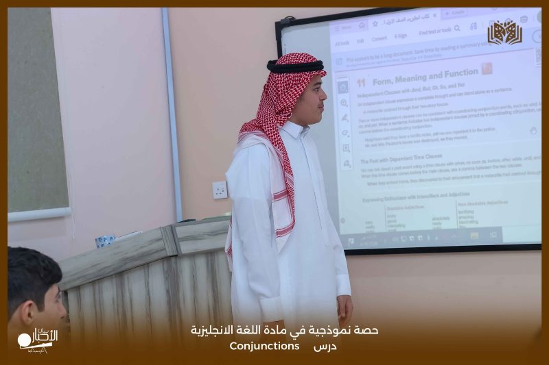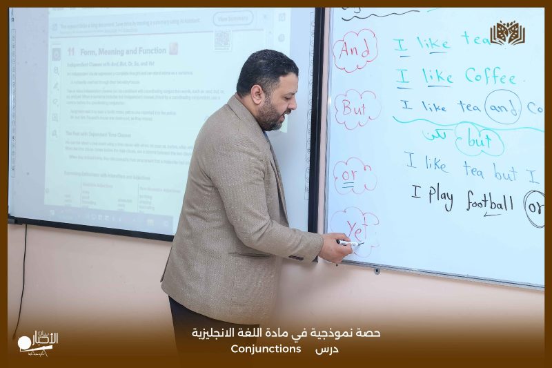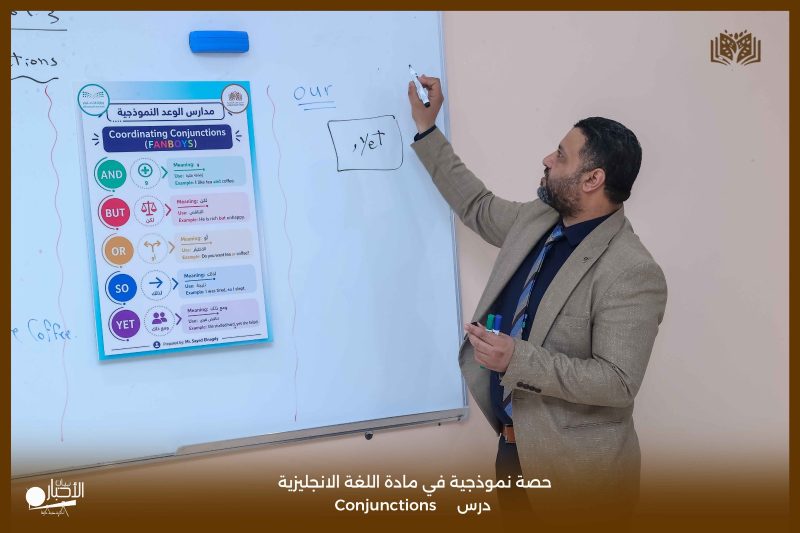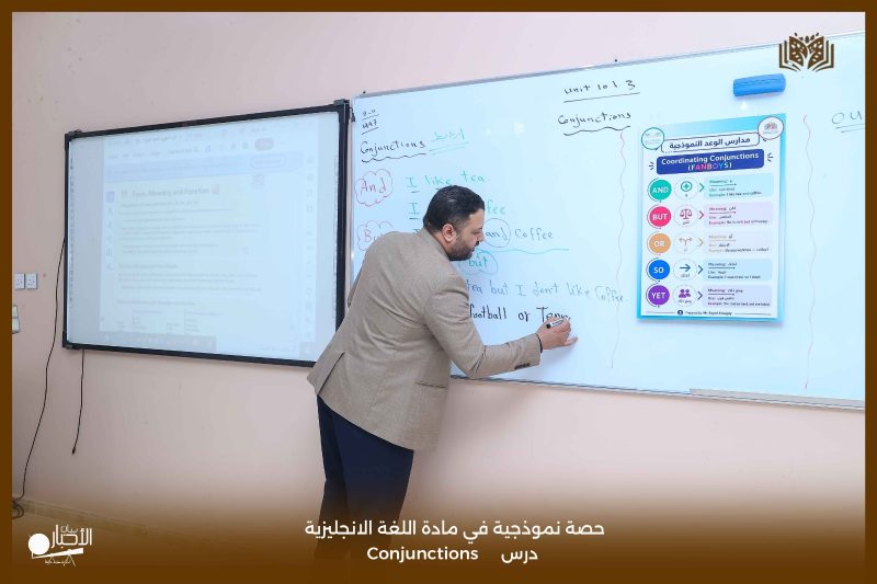 قدّمت مدارس الوعد النموذجية اليوم حصة نموذجية لطلاب الصف الأول الثانوي في مادة اللغة الإنجليزية، تناولت درس Conjunctions، وذلك ضمن جهودها المستمرة لتطوير العملية التعليمية ورفع مستوى التحصيل الدراسي.
