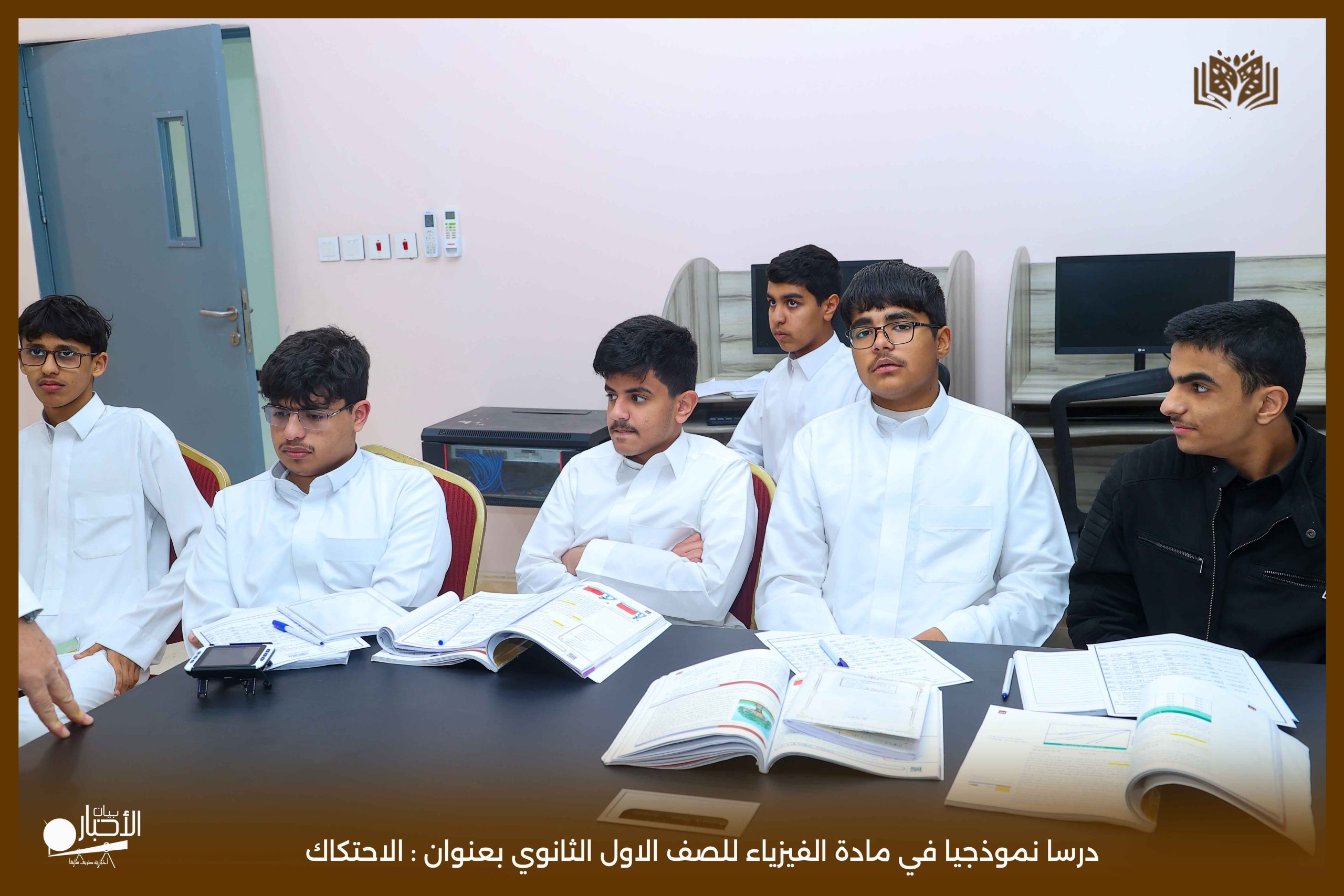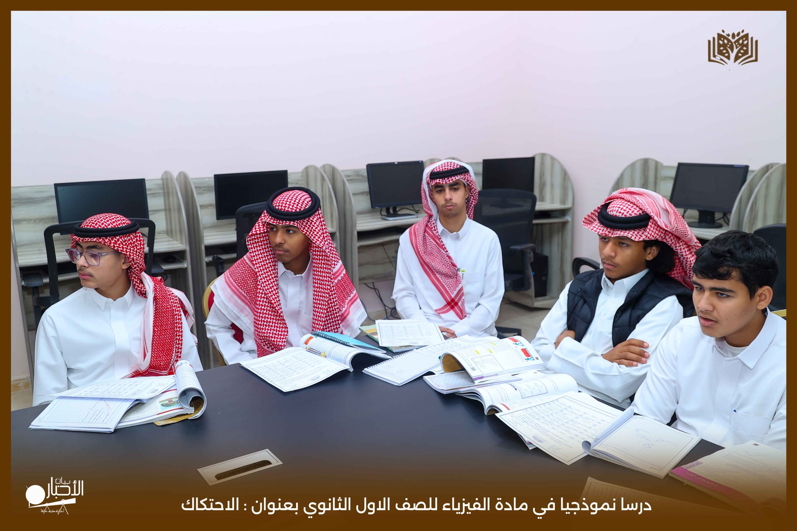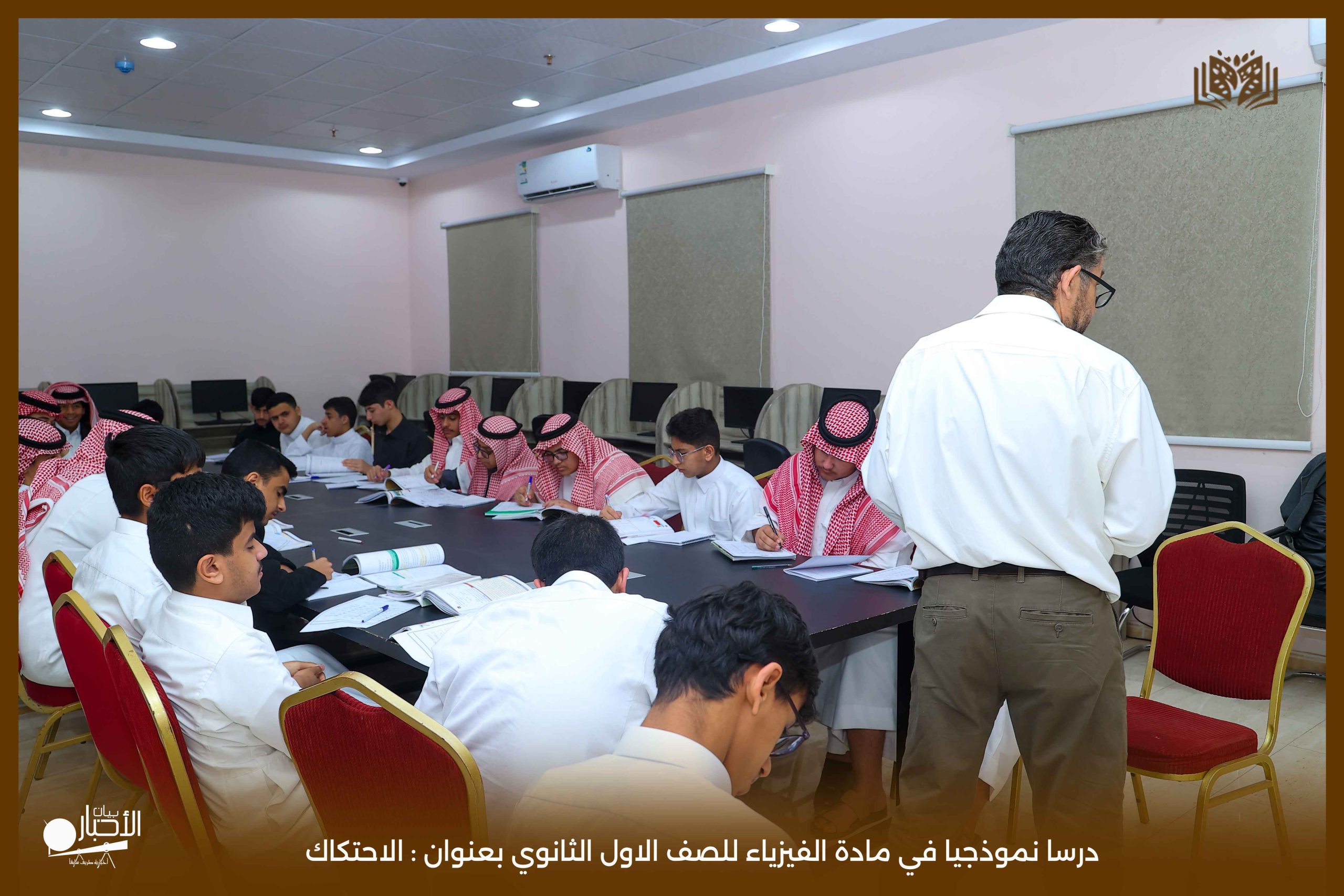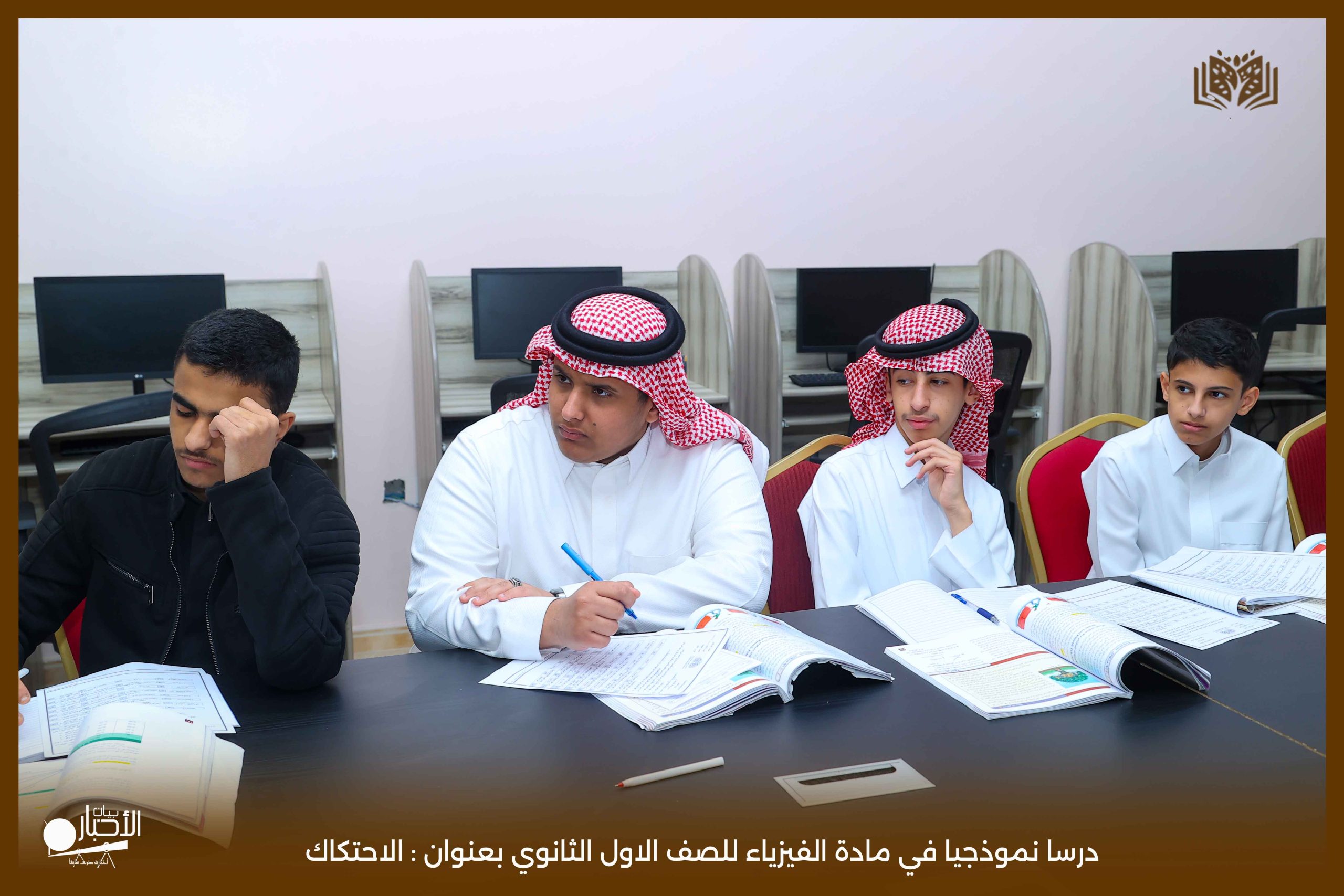 شهدت مدارس الوعد النموذجية بمحافظة طريف، يوم الثلاثاء 11 / 11 / 1447هـ، تنفيذ درس نموذجي في مادة الفيزياء للصف الأول الثانوي بعنوان “الاحتكاك”.