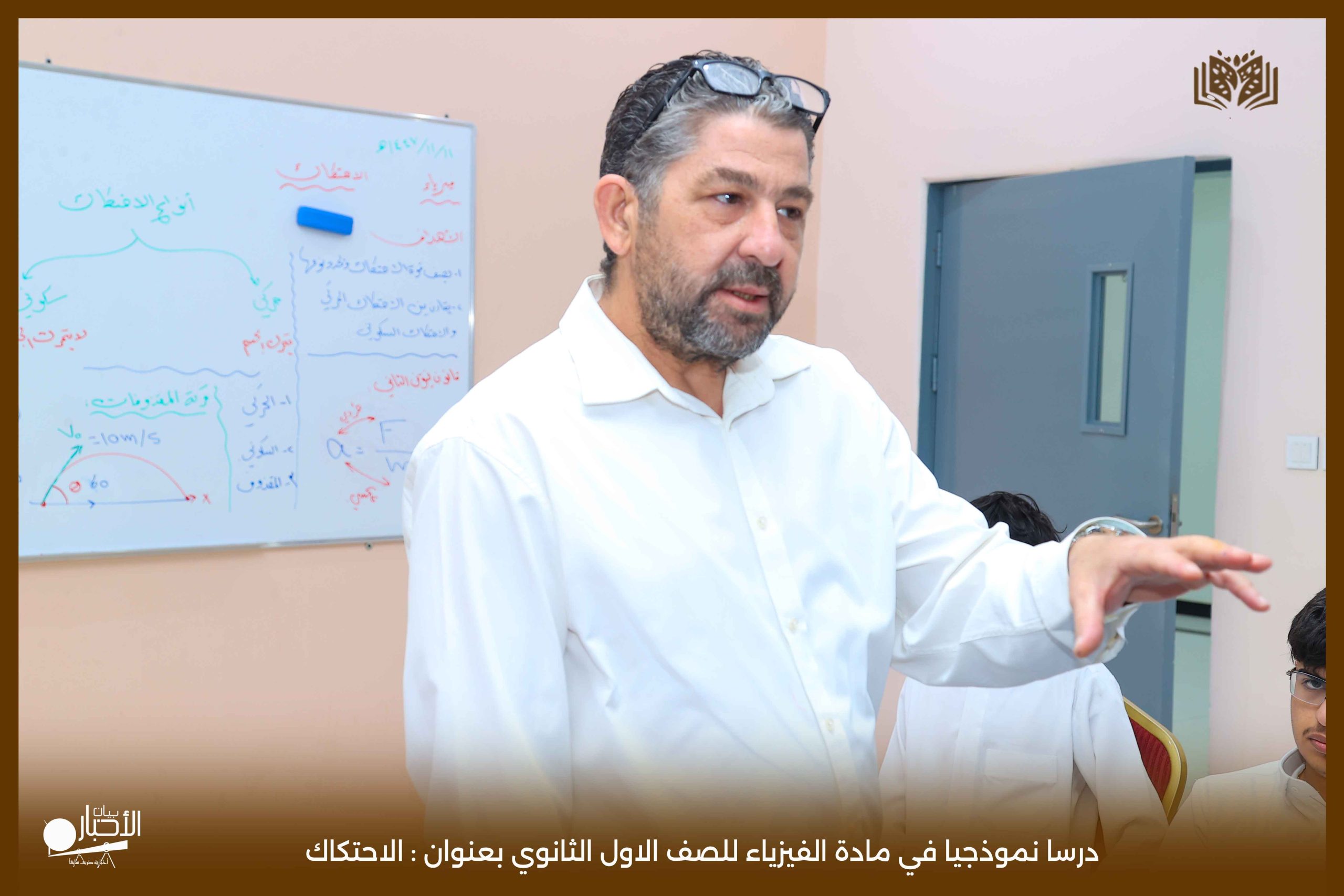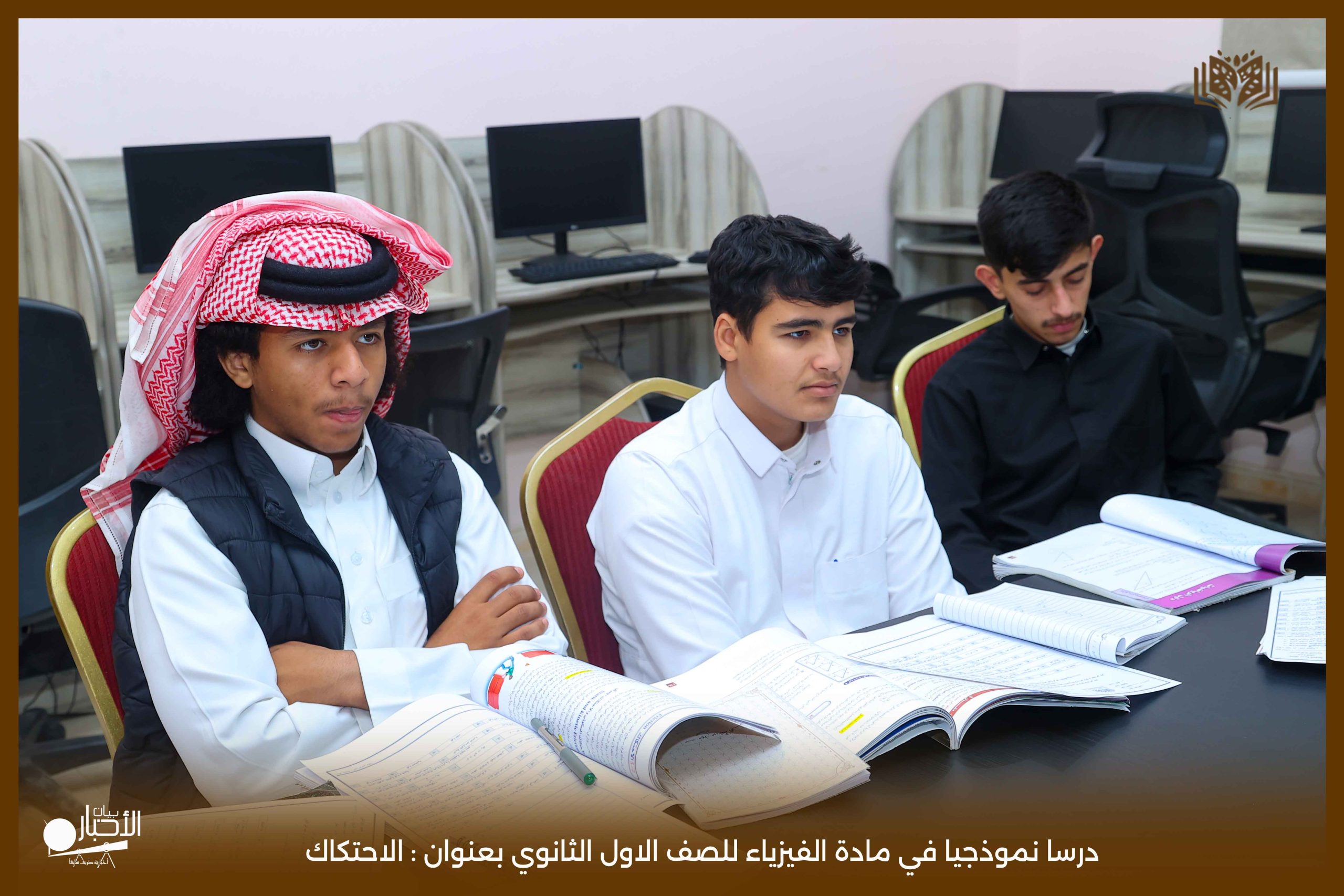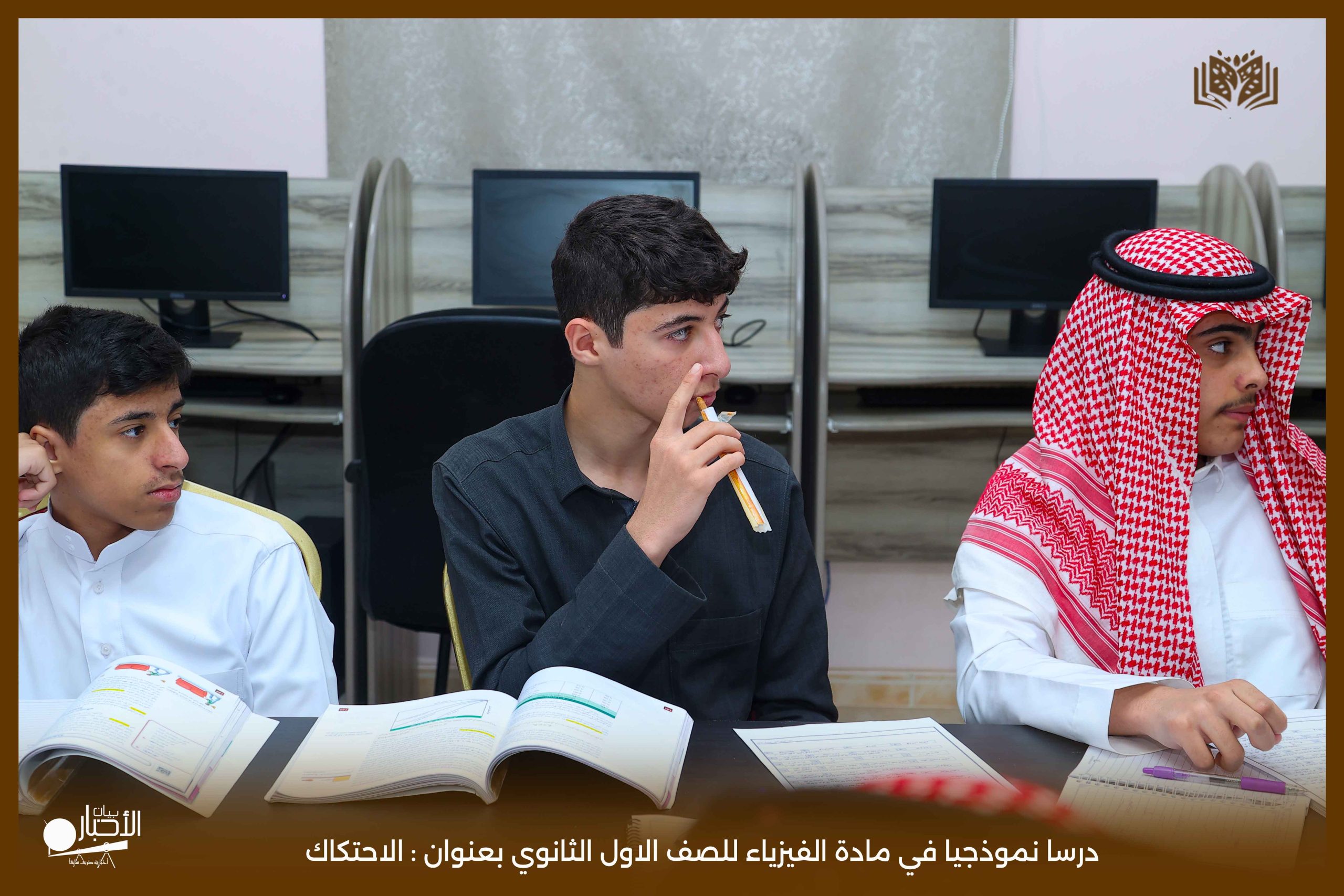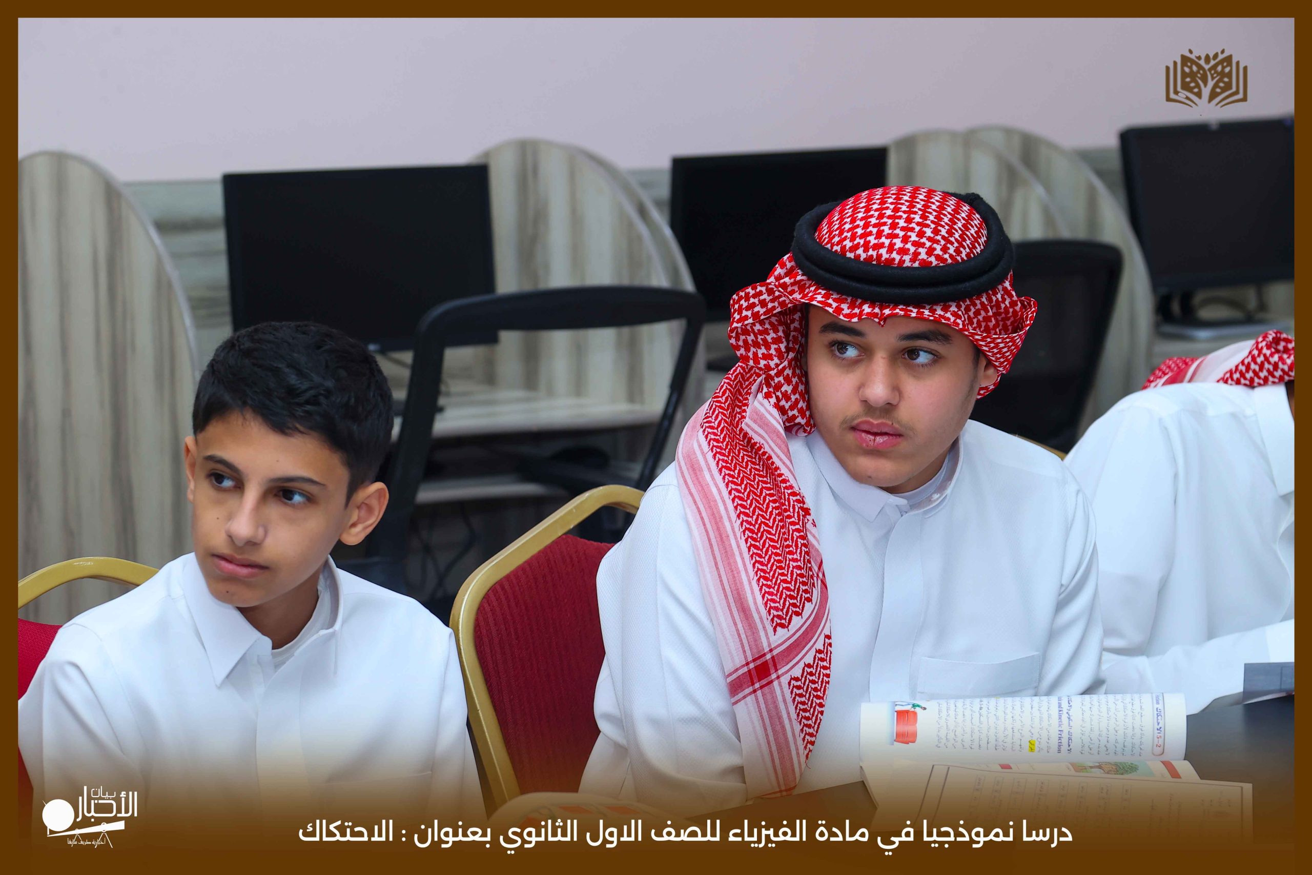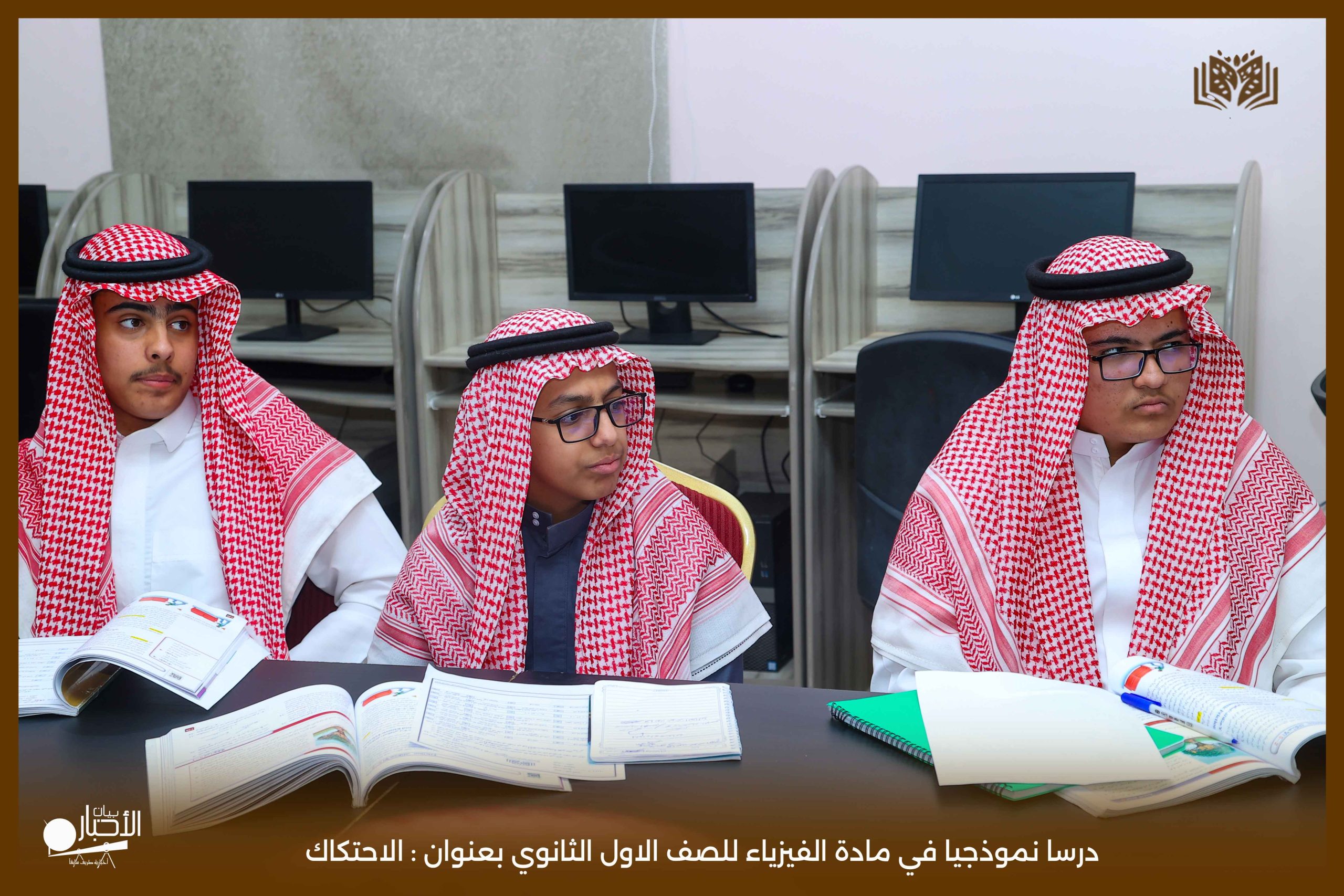 شهدت مدارس الوعد النموذجية بمحافظة طريف، يوم الثلاثاء 11 / 11 / 1447هـ، تنفيذ درس نموذجي في مادة الفيزياء للصف الأول الثانوي بعنوان “الاحتكاك”.