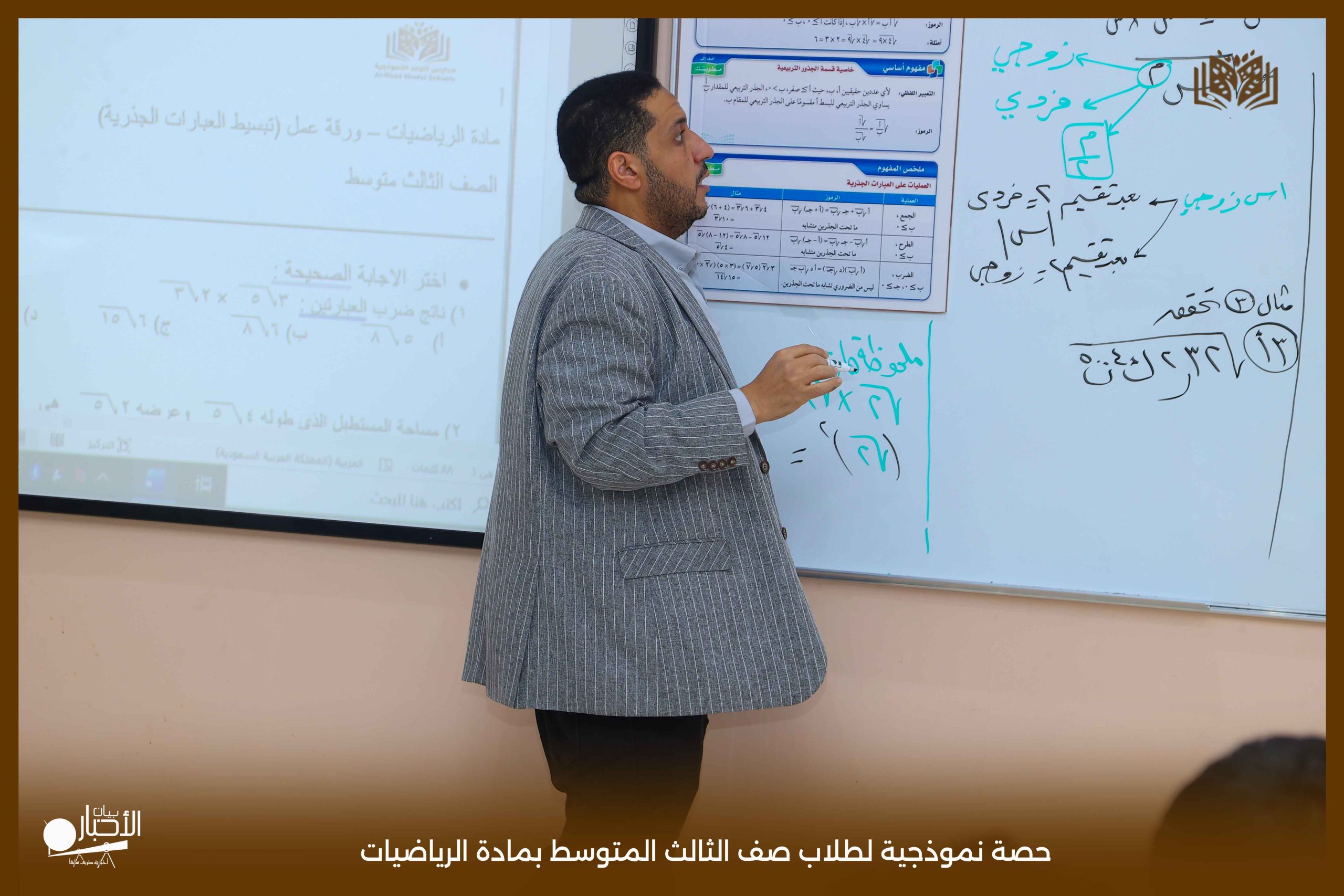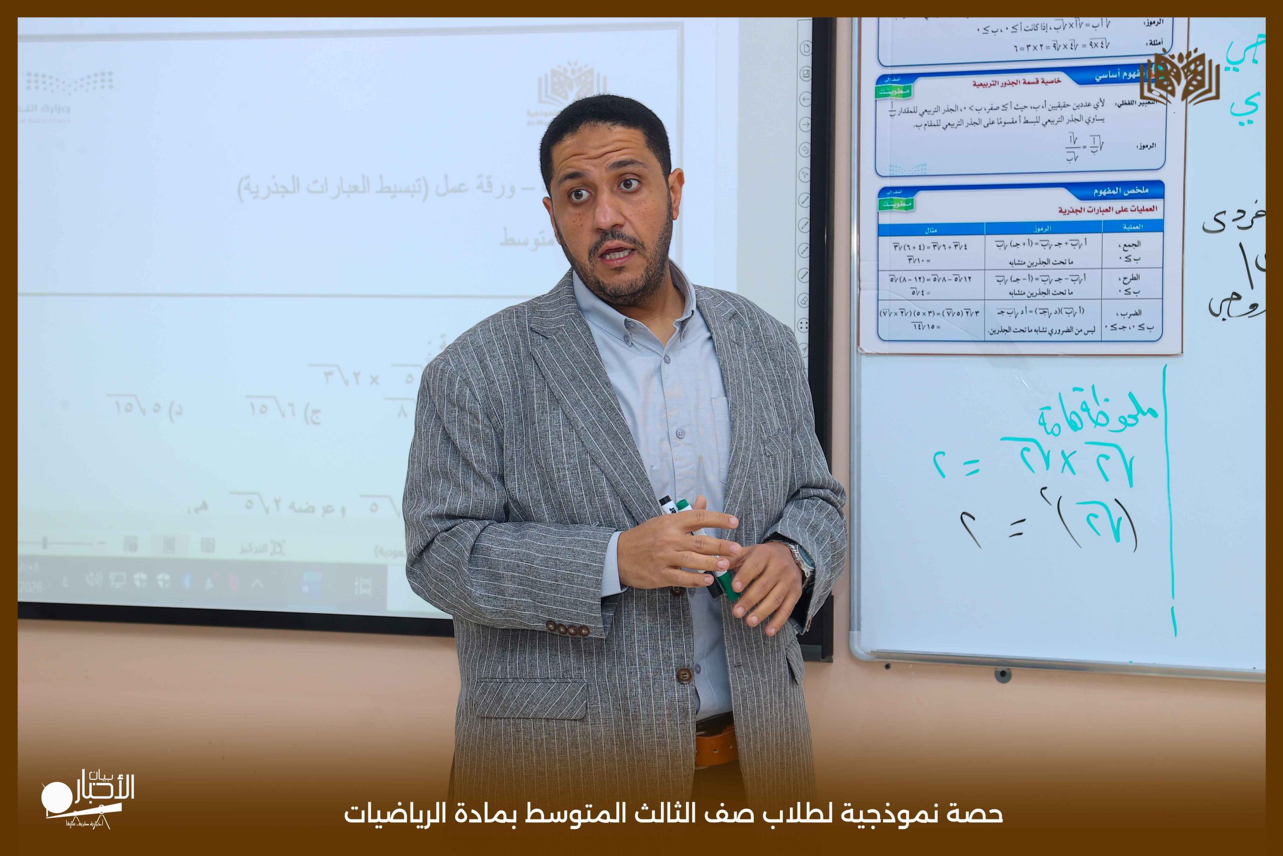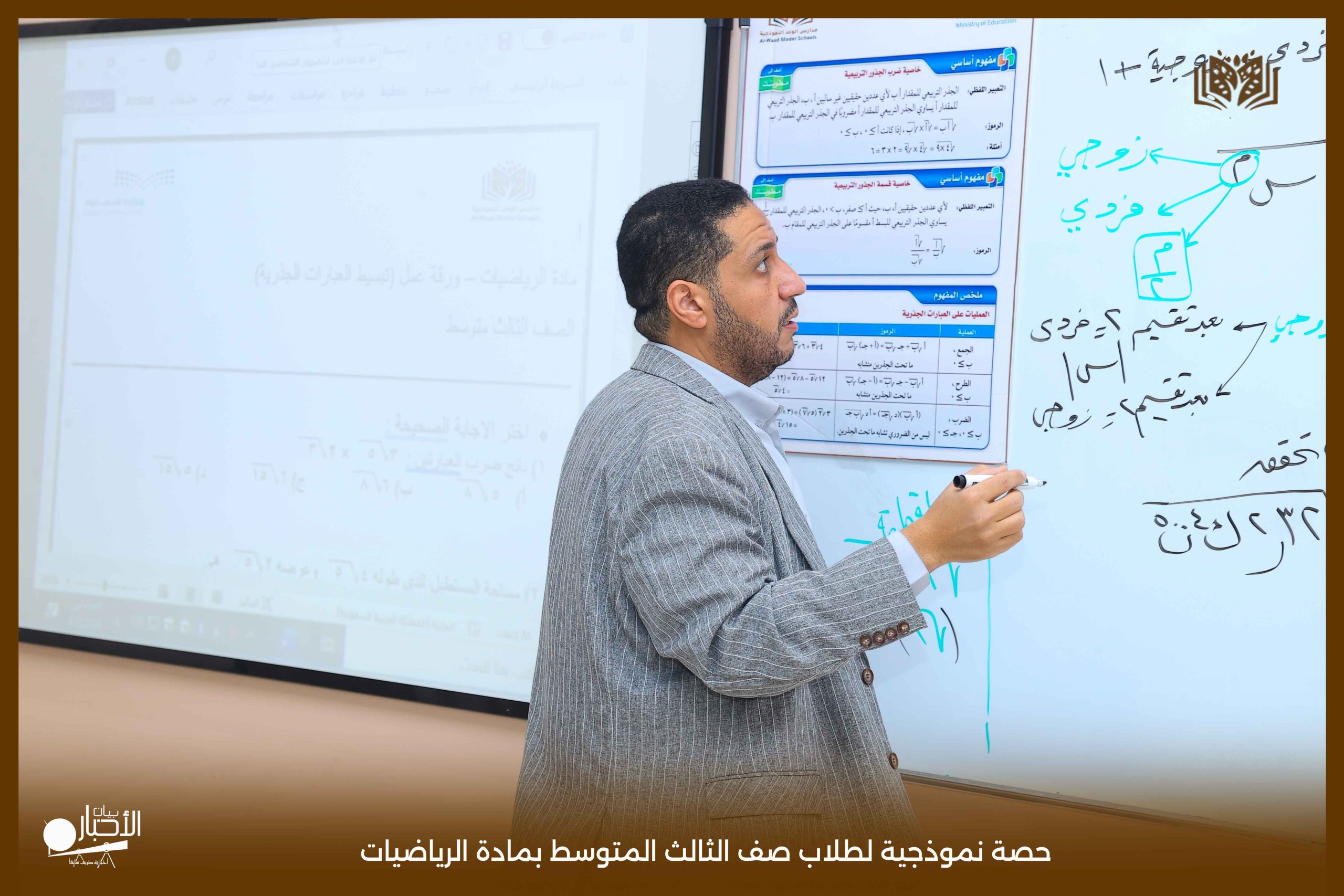 نفذت مدارس الوعد النموذجية (المتوسطة والثانوية)، اليوم الثلاثاء الموافق 11 / 11 / 1447هـ، حصة نموذجية لطلاب الصف الثالث المتوسط في مادة الرياضيات بعنوان “تبسيط العبارات الجذرية”.