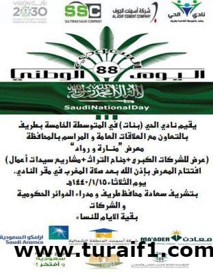 بالتعاون مع بلدية طريف محافظة طريف تعلن فقرات حفل اليوم الوطني ٨٨