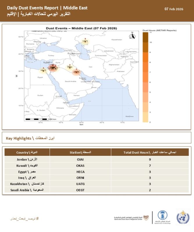 الظواهر الغبارية تتراجع في السعودية مقارنة بدول الإقليم في فبراير 2026
