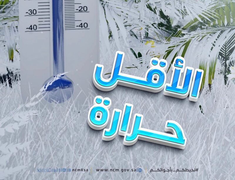 • “الأرصاد”: 4 درجات في القريات وطريف كأدنى حرارة بالمملكة